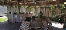 Tropical POOL home well located in S. Miami/Bird Rd. area. 3/2 FURNISHED. Impact windows. Open concept floor plan integrated to updated kitchen with upgraded stainless steel appliances. Well equipped with full complement of kitchenware, linen and towels. Master bedroom interfaces with the backyard and pool access. Ample space for a work area in the master. Resort style backyard features a tiki hut with ample bar seating, refrigerator, patio table and chairs. Large inviting pool surrounded by fruit trees and native vegetation. Seating areas around the pool to entertain and host family and guest gatherings. A tropical paradise in an urban environment. Well located with near proximity to UM, FIU, schools, expressway, hospitals and shopping.