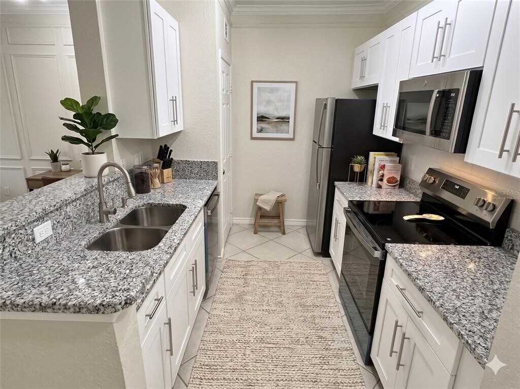 What makes this BEACHWALK condo special are the UPGRADES! NEW shaker-style cabinets with granite countertops in the kitchen. NEW stainless appliances. The kitchen breakfast bar is the perfect spot for a few bar stools. The living room features tile flooring and flows out to the SPACIOUS SCREENED BALCONY overlooking the lush courtyard. The primary suite offers NEW laminate flooring and boasts a large walk-in closet. The bathroom also has NEW cabinetry and granite counters. NEW tile work in the tub/shower combo. Washer and dryer to be installed prior to occupancy. The Beachwalk amenities include a resort style pool,clubhouse,fitness center,walking trails,car wash and kayak launching area. The GATED community offers peace of mind. 10 minutes to the Tampa Airport and close to restaurants and shopping. MLS# TB8502308