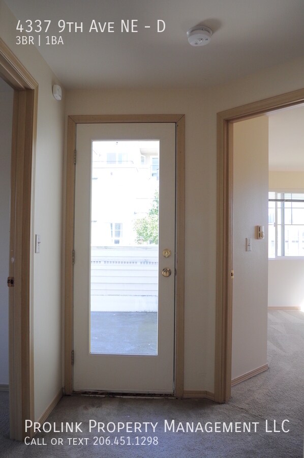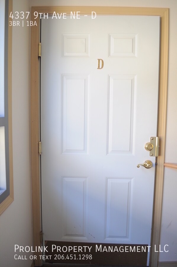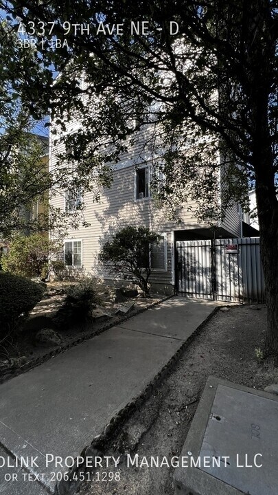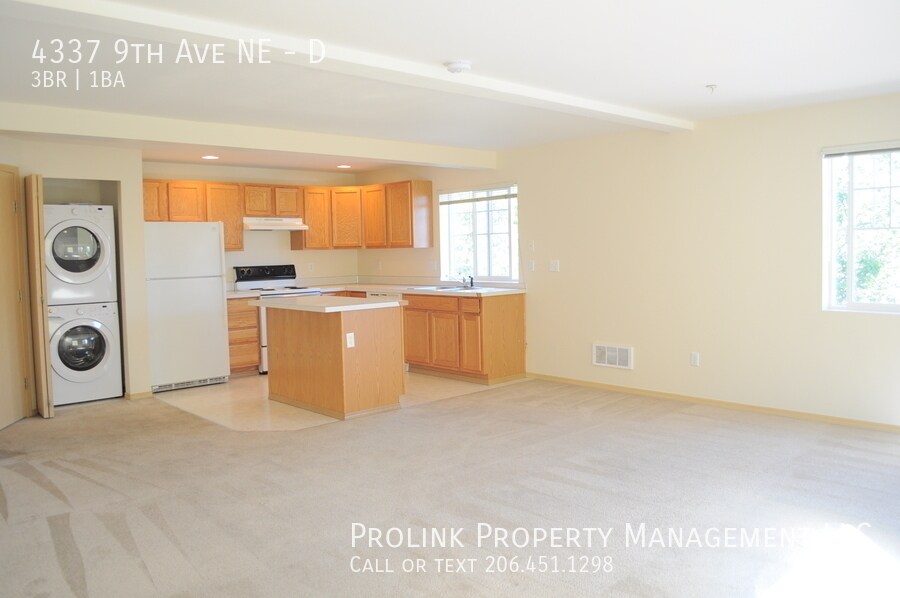 4337 9th Ave NE, Apt C/Apt D, Seattle, WA 98105 TWO 3BR apartments available Fall 2026! Please EMAIL to schedule tour or for more pictures/information! TWO 3BR units available for Fall Prelease! Well-maintained apartment building with new roof and exterior paint (2024), front and back security gates, plus fire sprinkler system, located in Walk Score-rated “Walker's Paradise” (95 out of 100)! Only a hop and a skip away from shopping, restaurants, cafes, UW campus, bus stops. Each updated unit includes cheerful Living Room, Kitchen with Dishwasher, in-unit Washer/Dryer, and one FREE assigned parking! NEWER Washer/Dryer (2025), NEWER oven/range and refrigerator (2024), and NEWER floors in (2023) Apt C; NEWER dishwasher (2023) in Apt D! Additional street parking available. * Listed rental rate includes charges for the reasonable usage of standard water/sewer/garbage services by three adult occupants only; Tenant is responsible for all other in-unit utilities (electric, Internet, etc.) * Apt C (1,095sq), $3,090.00/mo: 2-level unit, 3BR, 1BA, Kitchen, Living Room, Balcony, 1 assigned Parking Space * Apt D (1,095sq), $3,045.00/mo: 2-level unit, 3BR, 1BA, Kitchen, Living Room, Balcony, 1 assigned Parking Space * See more pictures: Apt C: Apt D: Pictures coming soon! * The information above has been given to us by the Owner or sources that we deem reliable. We have no reason to doubt its accuracy, but we do not guarantee it. Prospective tenants should carefully verify all information contained above * Apt C available early September, 2026 * Apt D available 9/09 * No Smokers, No Pets * Terms: Minimum 12 months; NO summer-only, short-term, or month-to-month leases. 1st Month's Rent and Last Month's Rent due at lease-signing; refundable Security Deposit equaling half of one month's rent due at start of lease * Satisfactory credit check, background check (where applicable), and rental references required for all applicants and expected co-occupants aged 18 and over; non-refundable application fee (as charged by screening agency) is $45.00 + tax per applicant * No deposits accepted until application is processed and approved * Leased by Prolink Property Management, LLC, 14670 NE 8th St, Ste 168, Bellevue, WA * Equal Opportunity Housing: We are pledged to the letter and spirit of U.S. policy for the achievement of equal housing opportunity throughout the Nation. We encourage and support an affirmative advertising and marketing program in which there are no barriers to obtaining housing because of race, color, religion, sex, handicap, familial status, or national origin.
