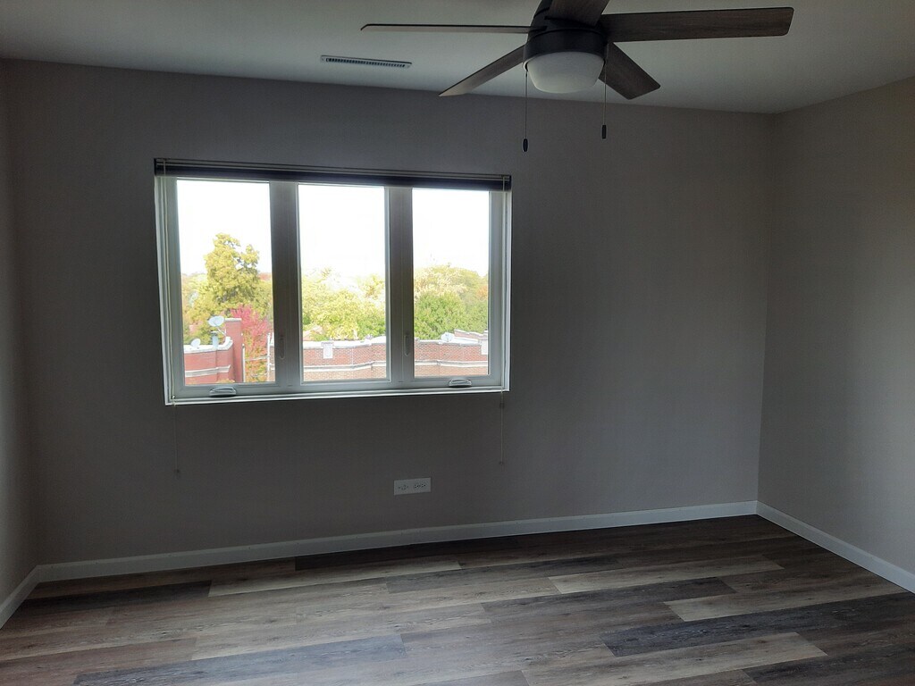 TOP FLOOR 2-bedroom, 2-bath condo, meticulously renovated in 2023, in a friendly 35-unit elevator building, centrally located in downtown Oak Park/River Forest, with a sweeping, private balcony view of downtown Oak Park and beyond. 3 blocks from Metra and Green Line stations, and easy walking distance to all that downtown Oak Park and River Forest have to offer. All new kitchen in 2023 with granite countertops, glass tile backsplash, and stainless steel applicances, including range/oven with air frying capability, large refrigerator with ice maker, and filtered drinking water dispenser. Primary bedroom has an en-suite bathroom and walk-in closet. Gorgeous new calacatta gold ceramic tiling in bathtub and shower surrounds. New dual-flush toilets in both bathrooms. All interior closets and additional storage closet are equipped with adjustable closet organizers. All windows have top-down, bottom-up blinds to enable simultaneous privacy and views from this top-floor unit. Central heat and A/C. All electric building. Shared laundry facilities on ground floor with mobile app operation. No smoking inside the unit or the building is allowed. Only pets allowed in this unit are cats. NO HIDDEN OR EXTRA FEES: everything except your own electricity and cable/internet is included in the monthly rent. One designated parking spot in the building parking lot is included. This unit is part of a small condominium community of diverse, stable residents, most of whom are unit owners, providing a warm community vibe to residents. Front entrance and lobby are CC-TV monitored. Entry will be controlled by a video intercom security system in early 2026. 15-month lease agreement. Longer term is negotiable.