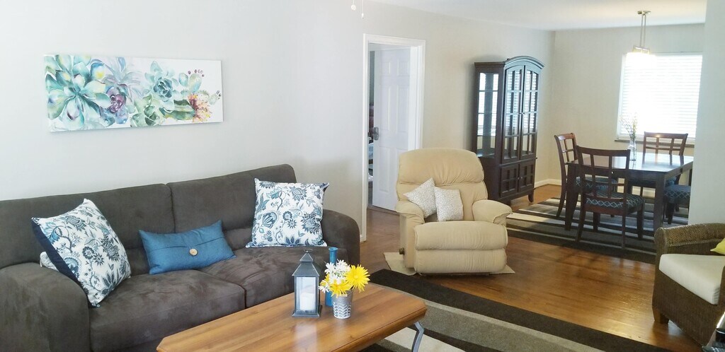 Amazing 4 bedroom, 2 bathroom house in Kenwood/Blue Ash. Fully Furnished (all inclusive) short-term housing. Centrally located on a quiet street in Kenwood. Welcome home to this gorgeous, newly renovated 4bd/2ba fully furnished house. Home features beautiful hardwood floors, spacious dining area and living room with large screen tv. Kitchen has bright white cabinets, granite countertops, tile floors, and stainless steel sink and refrigerator. Updated and newly remodeled bathroom. Washer/Dryer. Enjoy your spacious backyard. One car garage included. Includes all utilities, trash removal, landscaping, wifi, high speed internet, and cable. Located within walking distance of Kenwood Towne Center and a short 15 minute drive to downtown Cincinnati and Mason! Looking to buy, let our licensed realtors help you find the home of your dreams! Contact us for more details or to reserve today!