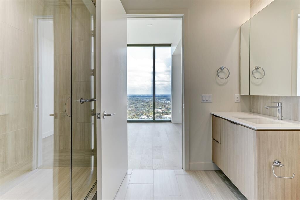 Be the first person to occupy this incredibly rare west facing 2 bedroom condo on the 44th floor of 44 East Avenue built by world renowned Page Architects. This contemporary condo is nestled in the heart of downtown Austin and just minutes away from I-35 &; 183, Austin-Bergstrom airport, &; UT. An architectural treasure with gorgeous skyline views and a north-west view, this stunning condo provides an exceptional sight of the extraordinary Austin skyline including our beautiful Lady Bird Lake. Showcasing a spacious open-concept floor plan - soaring ceilings, recessed lighting, &; floor to ceiling windows throughout. Natural light flows throughout making the space feel light, bright, &; airy. Stark white walls contrast boldly w/the warm hardwood floors that flow throughout the entire condo. The kitchen has been thoughtfully designed &; provides the ideal setting for entertaining - generously proportioned island w/seating and waterfall counter tops, stainless steel appliances, &; abundant floor-to-ceiling cabinet storage. Wake up feeling refreshed &; renewed in one of two luxurious owners’ suites both w/ private ensuites. Immense storage and multiple closest throughout the condo! An oversized balcony gives you endless options for entertaining, enjoy the skyline views or relax &; soak up our gorgeous Texas weather. Incredible, state-of-the-art amenities provides a life of luxury – resort-style pool, fitness center, 24-hr concierge with coffee lounge, yoga studio, conference rooms, 2 dog parks, various deck/grill areas, pet spas, on-site dry-cleaning service, 2 restaurants, and a lavish 37th floor double height sky lounge! Convenient to hiking/biking trails, all the downtown hot spots, and walkable distance to Rainey St – with ample choices of eclectic restaurants, unique bars, &; cozy coffee shops at your fingertips. A mere 15 mins to Mueller makes running errands a breeze. Single-car garage space included with unit, second space negotiable.
