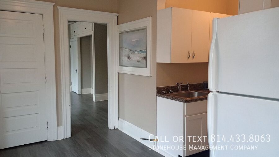 Welcome to our cool studio in a beautiful downtown mansion located in Erie, PA. This charming apartment features studio living with a separate bathroom and bedroom, perfect for those seeking a cozy living space. The apartment comes equipped with a stove and refrigerator. Enjoy the convenience of off-street parking and coin-operated laundry facilities on-site. Best of all, all utilities are all included! Don't miss out on this unique opportunity to live in a historic mansion in the heart of downtown Erie. Contact us today! 2nd Floor private suite Newly Furnished Clean and Sealed FULL size bed Coin Op Laundry in basement Off Street parking is limited to first come first serve Cats ok : ) Seasonal window A/C units provided. Easy month to month, all inclusive arrangements. Thanks for considering our space! *NOTE: we do not provide linens, toiletries, or pillows. All Utilities Included Coin Op Laundry Electric Gas Lawncare Refridgerator Snow Removal (Driveway) Stove Water/Sewer/Garbage