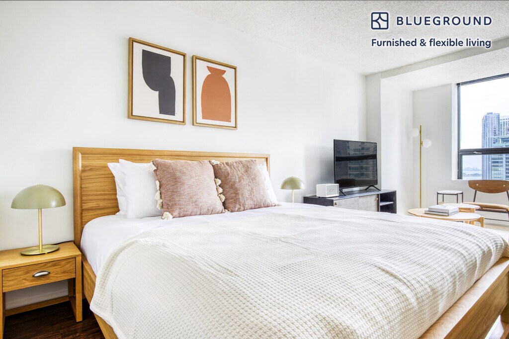 Feel at home wherever you choose to live with Blueground. You’ll love this sophisticated Streeterville furnished one bedroom apartment with its modern decor, fully equipped kitchen, and lovely living room with great high floor views. Ideally located, you’re close to all the best that Chicago has to offer! (ID #CHI410) The advertised rate of $2,761/month is the lowest available price, based on a 12 month(s) stay with a move-in date of March 16, 2026. Rates vary depending on the duration of stay, season, and other parameters. For exact pricing and additional pricing components, please visit our website and enter your desired move-in and move-out dates. The rate is applicable when billed upfront; it can be higher if billed in multiple payments. Brokers are welcome to reach out. Were you looking for an unfurnished lease? Try Blueground instead and upgrade from unfurnished to furnished living: - Furnished at rates comparable to unfurnished - No setup or furniture costs - save thousands - Move-in ready - save time, just bring your suitcase Designed with you in mind Thoughtfully designed with bespoke finishes, modern furnishings, and a fully equipped kitchen, you’ll enjoy that “I’m home” feeling with this Blueground apartment. Whether you’re lounging in your sophisticated living room streaming the latest and greatest entertainment on the smart TV or premium wireless speaker, or getting some well-earned rest on the superior quality mattress with fully stocked linens, you’ll fall in love with everything this Streeterville apartment has to offer. Sleeping arrangements King Bed, 70.8in/180cm Amenities Building amenities unique to this one bedroom apartment include an on-site: - BBQ Area - Doorman - Dryer in building - Elevator - Swimming pool - Washing machine in building - Pets allowed Arrival and ongoing support The entire apartment is yours to enjoy! Throughout your stay, you’ll have access to our Client Experience team through the Blueground App. You can schedule additional cleanings, submit maintenance requests, and view our neighborhood recommendations with just a few taps. We’ll share all details upon confirmation of your stay. Ideally Located This furnished rental is located in Streeterville, only a 5 minute walk from The Loop. One of the fastest-developing neighborhoods in Chicago, Streeterville extends out into Lake Michigan and attracts a blend of young professionals, students, and tourists. A plethora of amenities and activities exist for every lifestyle. From Navy Pier activities to luxury shopping on Michigan Avenue, it is a walkable community with easy access to entertainment. Other things to note Building amenities may have an extra cost. This Blueground apartment has flexible lease options, allowing you to book it for one month, a year, or more. Pets are welcome, though weight limits and breed restrictions apply and may incur fees. We take great pride in ensuring every photo displayed is shot in our own units with our actual furnishings. That said, we regularly refresh our decor and furniture arrangement, which may differ from what’s pictured. Also note - This apartment's central location means it can be noisy at times - The apartment is in a busy location, so it will be noisy when your windows are open [SI]