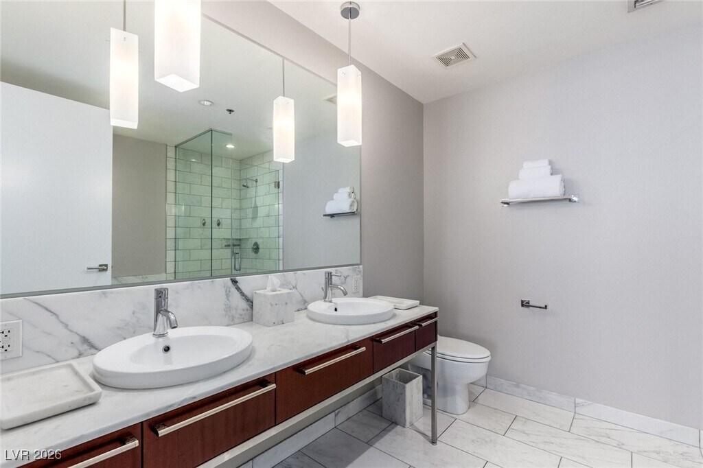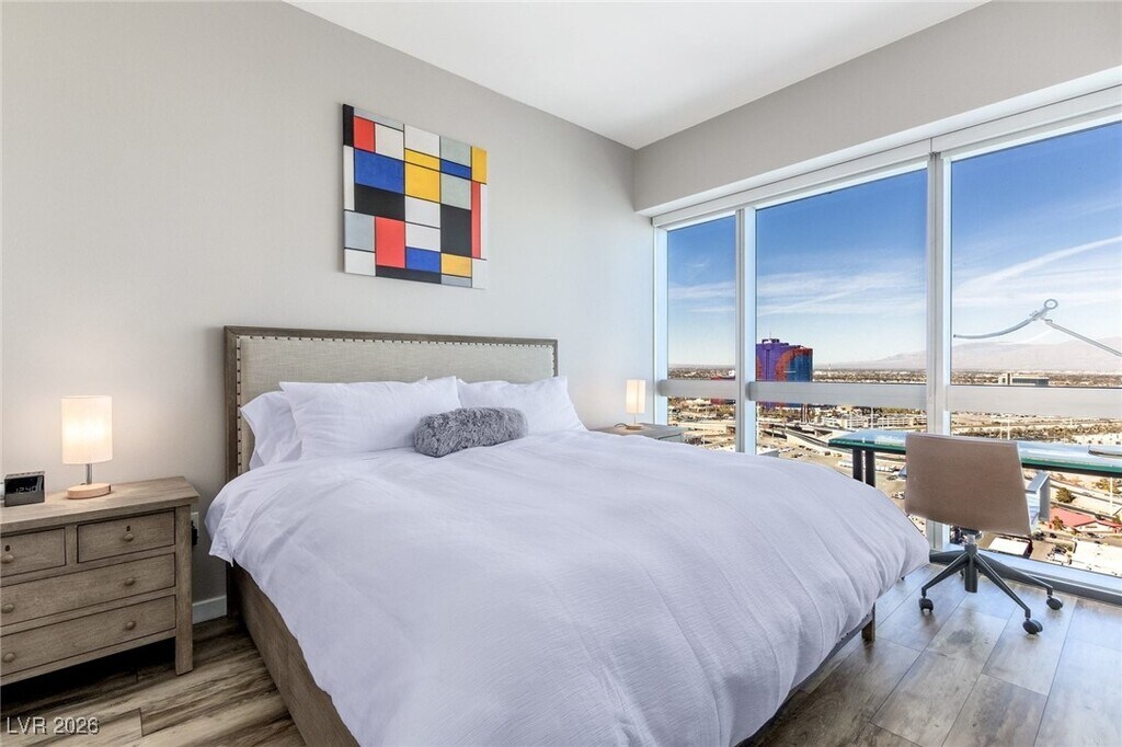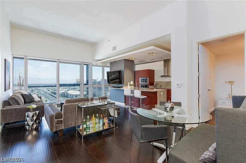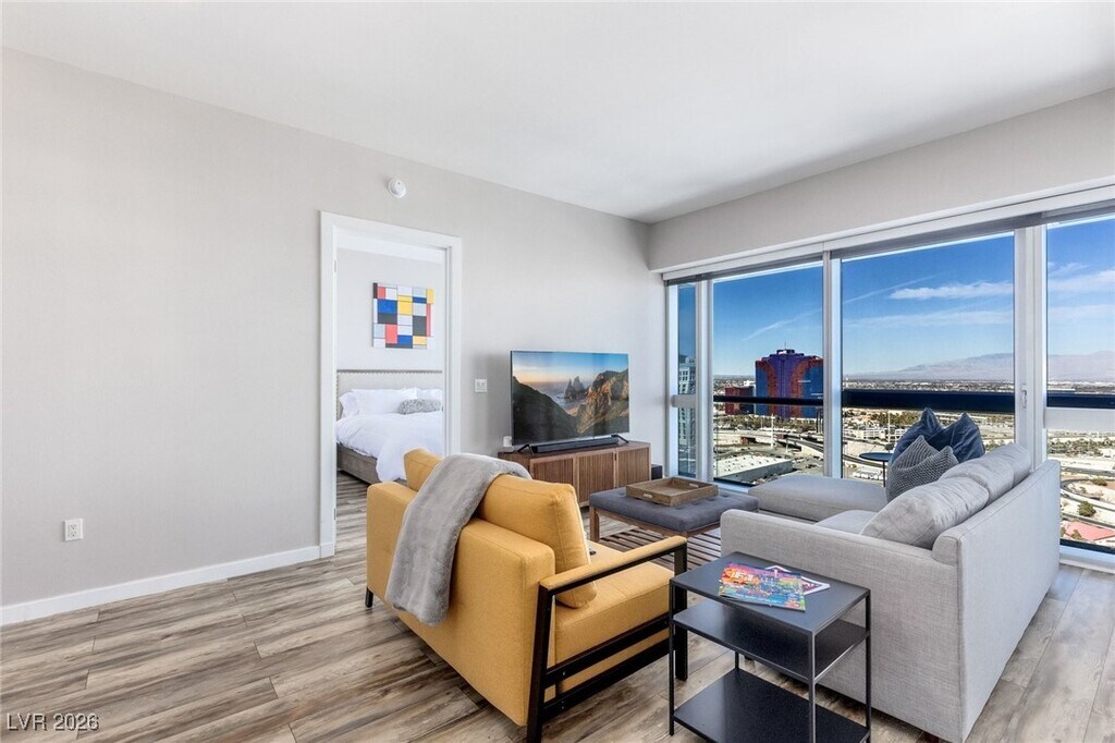 Experience elevated high-rise living at Residence 3201 in The Martin. This stunning 2-bedroom, 2-bath residence is offered as a turn-key furnished rental, thoughtfully designed for both comfort and style. Floor-to-ceiling windows frame breathtaking panoramic views of the Las Vegas Strip, filling the open-concept living space with natural light and showcasing the vibrant skyline day and night. The well-appointed kitchen flows seamlessly into the living and dining areas, ideal for both relaxing and entertaining. The spacious primary suite offers a serene retreat, while the guest bedroom provides flexibility for visitors or a home office. Residents of The Martin enjoy true full-service living with resort-style amenities, including a state-of-the-art fitness center, spa facilities, and a sparkling pool with private cabanas. Located just moments from the energy of the Strip, yet tucked away for privacy, this is luxury living at its finest. MLS ID 2773435