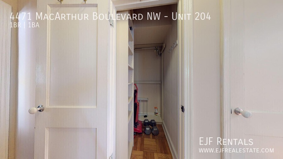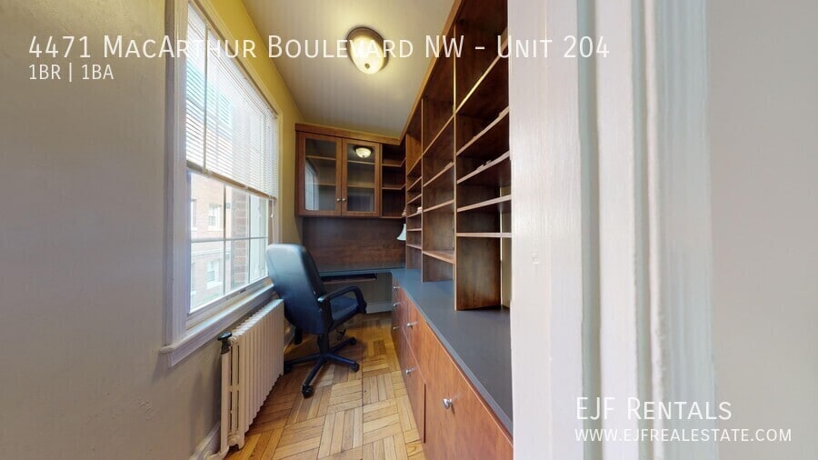 3D Virtual Tour: Property Address: 4471 Macarthur Boulevard NW #204, Washington, DC 20007 Neighborhood: Palisades Market Rent: $1,600 for a 16-24 Month Lease OR $1,800 for a 12 Month Lease Utilties Included: Water, Sewer, & Trash Tenant Responsible For: Gas, Electricity, Cable, Internet, & Phone Square Footage: 580 Square Feet Pets: No Parking: Assigned Parking Available: Now! Delightful one bedroom one bath located in the Palisades, offers living room space, bistro style dining area, updated kitchen, and an office space! Assigned parking and additional storage included. Close to Georgetown, public transit, shopping, and restaurants. Bedrooms: One Bedroom Bathrooms: One Bathroom Appliances: Refrigerator, Gas Stove, Microwave, Oven, Dishwasher Amenities: Hardwood floors, Stainless Steel appliances, Additional Storage, Parking, Laundry in Building Application Fee: $52 per applicant Deposit: Equal to One Month’s Rent Move in Fee: $200 Resident Benefit Package: $38/Month (Please speak with one of our leasing agents for more information) EJF Rentals 1428 U Street NW, Second Floor Washington, DC 20009 Main Line: