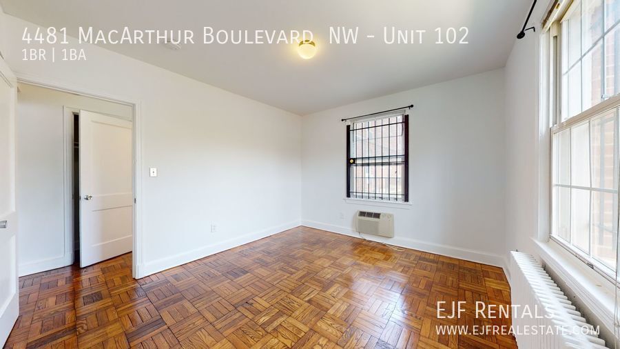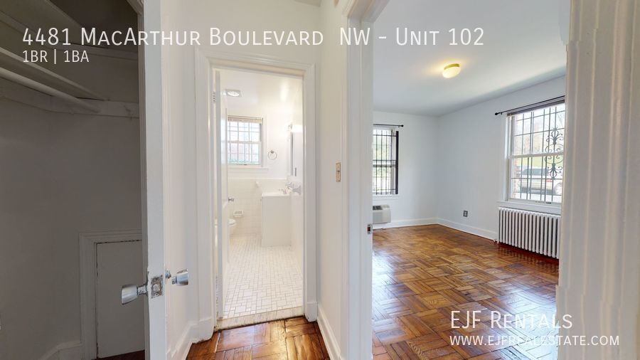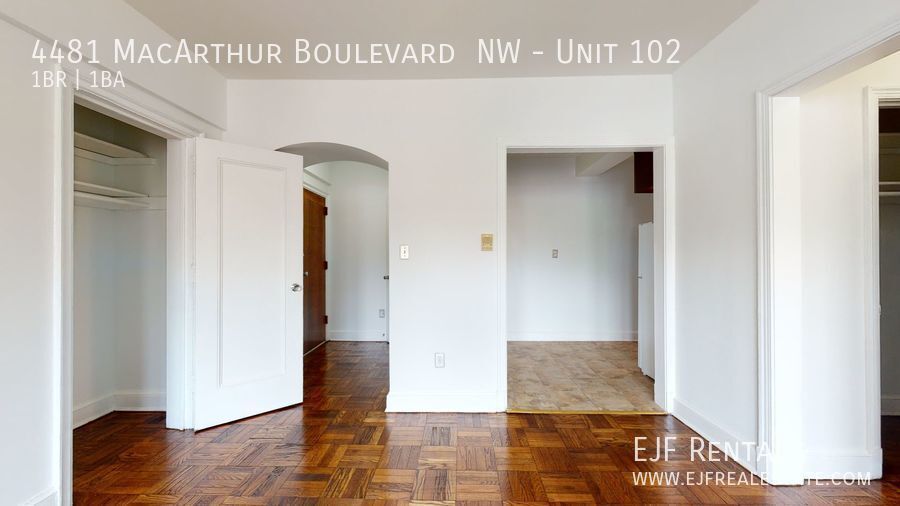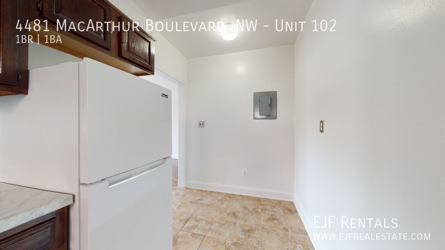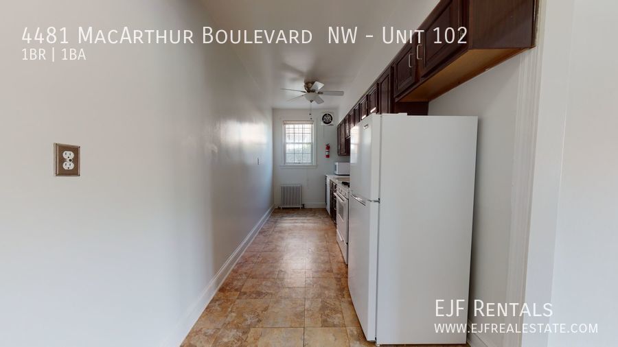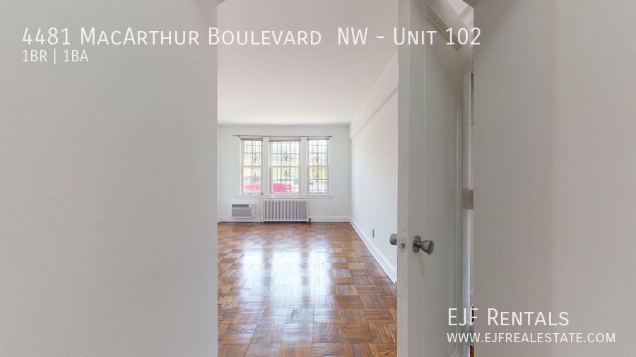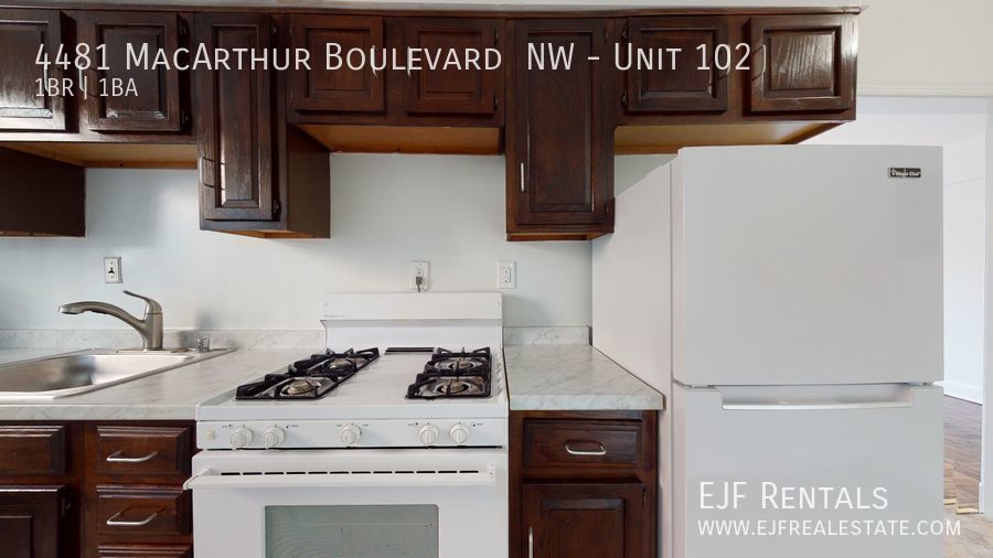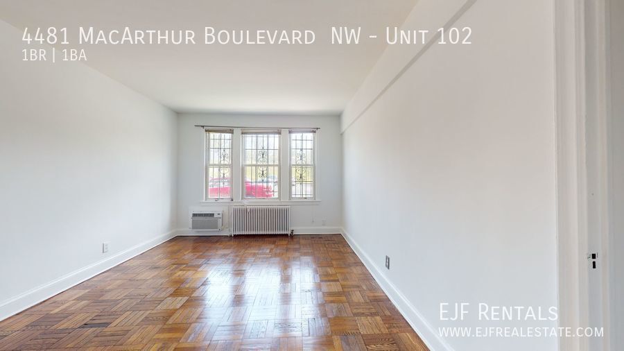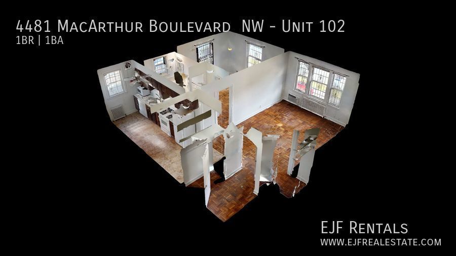 3D Virtual Tour: Address: 4481 MacArthur Blvd. NW Unit 102 Washington, DC 20007 Market Rent: Price: $1,550 for a 14-24 Month Lease OR $1,700 for a 12 Month Lease Utilities Included in Rent: Water, Sewer, and Trash Tenant Utilities: Electricity, Gas, Cable, Internet, & Phone Parking: One Spot Included Pets: Yes, Case By Case Status: Available Now! Bedrooms: One Bedroom Bathrooms: One Bathroom Neighborhood: Palisades Kitchen: Dishwasher, Gas Cooktop and Oven, Disposal, Refrigerator, Ice Maker and Freezer. Laundry: W/D in Building Sq Ft: 619 Square Feet Application Fee: $52/Applicant Deposit: Equal to One Month’s Rent Move Fee: $250 During Week OR $350 for a Weekend Move In Resident Benefit Package: $35/Month for Resident Benefit Package Pet Fees: 1% of Monthly Rent/Month Floors: Hardwood A/C & Heat: Wall A/C and Radiated Heat Amenities: Laundry In Building, Off Street Parking Included, & Pets Welcomed EJF Rentals 1428 U Street NW, Second Floor Washington, DC 20009 Main Line: