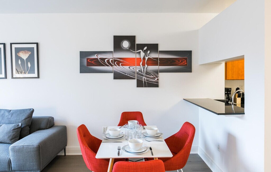 Feel at home in this contemporary 1-bedroom, 1-bathroom fully furnished apartment located on the 3rd floor of a building with an elevator. The apartment boasts a sophisticated living room and a fully equipped kitchen, making it easy to settle in and start living. The apartment features a fully equipped kitchen with countertops, appliances, a built-in microwave, and a dishwasher. Enjoy wireless internet, a flat-screen TV with basic channels in the living room, a comfortable sofa, spacious closets, and parquet wood flooring. Pets are allowed in the apartment, and towels and linens are provided for your convenience. The apartment is situated in a vibrant neighborhood, offering easy access to public transportation and nearby attractions, making it an ideal location for exploring the city. The apartment is children-friendly and has been recently renovated, featuring air conditioning and stainless steel appliances for a comfortable stay. High-speed internet is available, making it a remote work-friendly environment. [SI]