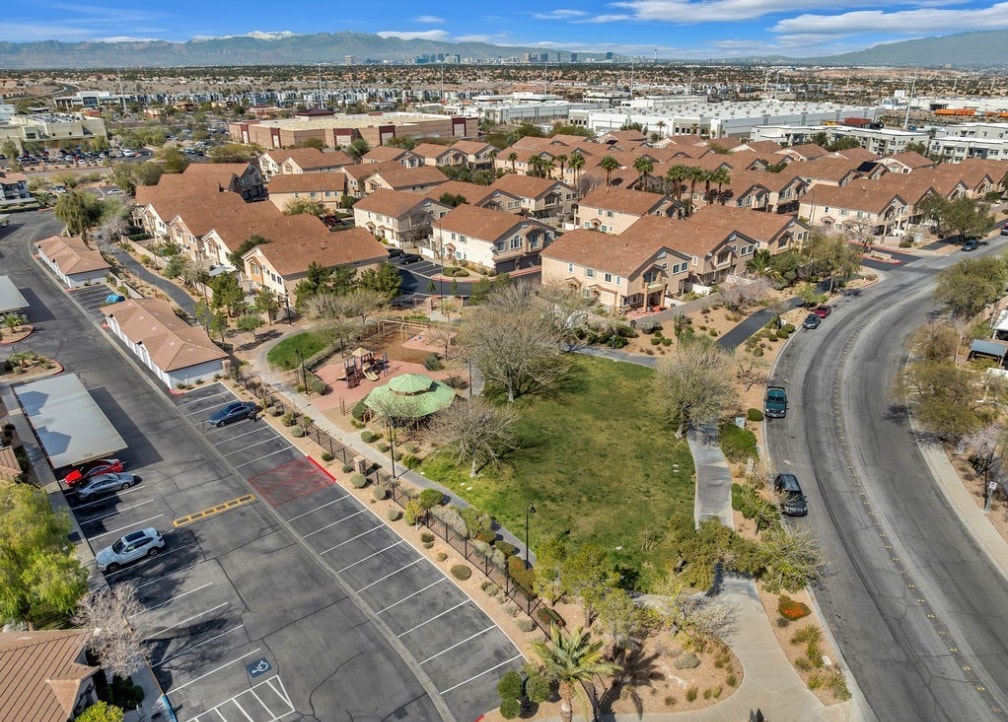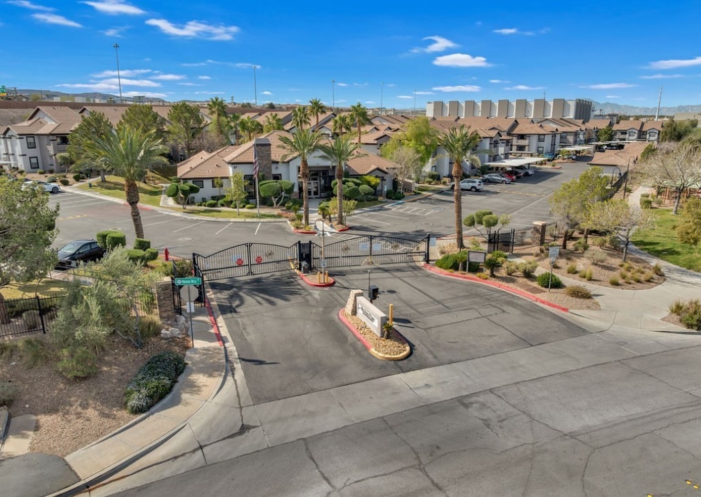 Welcome to your new home at Traverse Point! This bright and airy 1,029 sq. ft. condo features an ideal "dual-primary" layout, offering maximum privacy with bedrooms on opposite sides of the unit, each equipped with its own generous walk-in close. The primary suite includes its own private full bath, while the second bedroom has easy guest access to the second full bathroom. Skip the dusty balcony and enjoy more living space! This unique ground-floor condo features a dedicated, built-in office nook—perfect for remote professionals, students, or creators needing a quiet workspace. The open-concept floor plan feels extra spacious thanks to vaulted ceilings and a seamless flow from the kitchen to the large living area. Located in a quiet, gated community with resort-style amenities including a sparkling pool, spa, and a fitness center. Just minutes from Touro University, the I-215, and the best shopping/dining Henderson has to offer. All appliances included (washer/dryer in-unit) plus assigned covered parking!