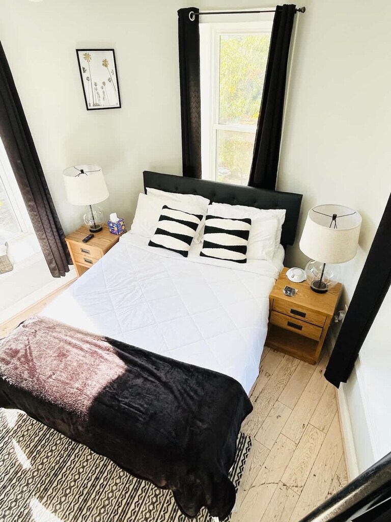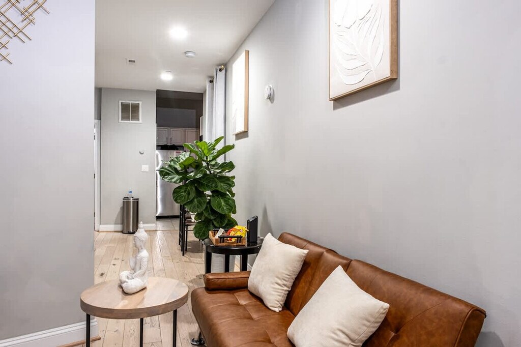 Feel at home in this stylish 2-bedroom, 2-bath oasis in Washington, DC. This modern home is perfect for experiencing the city’s rich culture and lively social scene. This well-designed home blends the charm of DC with the ease of modern living, comfortably hosting up to 5 guests. Each bedroom features a queen-size bed, premium linens, and ample storage. The modern bathrooms ensure a smooth and comfortable stay. Enjoy high-speed Wi-Fi, a smart TV, and a fully equipped kitchen. For extended or more flexible parking, an optional Zone 5 residential permit can be arranged in advance for $15/day. Positioned in a vibrant part of DC, you’re minutes from Union Market, U Street and H Street Corridors, Howard University, DC Monuments and the Capitol Building. Indulge in local favorites like The Red Hen and Big Bear Cafe. Trader Joe’s, Giant and convenience stores are just a few minutes away. Easy metro access via Rhode Island Ave Metro, Union Station, and other nearby stops makes exploring effortless. This home is located in a multifamily building in an active city neighborhood, so some ambient noise from neighboring units or street activity may be present at times. For added comfort, white noise machines are provided in each bedroom to help create a more restful environment. This is a pet-free home. [SI]