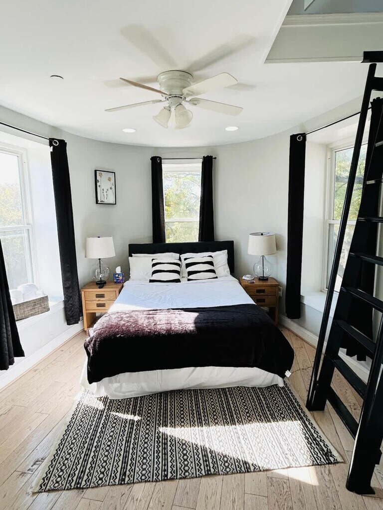 Feel at home in this stylish 2-bedroom, 2-bath condo in the iconic Castle building, featuring high ceilings and a private balcony. Designed for relaxation and entertainment, this light-filled haven features modern furnishings and high-quality bedding. The spacious living room, smart TV, and high-speed Wi-Fi make it easy to relax or stay connected. Guests enjoy access to a shared kitchen and an in-unit washer and dryer. For guests who prefer to park all day or overnight without needing to move their car, a Zone 5 residential parking permit can be arranged in advance for $15 per day. Permit holders may park anywhere within the posted Zone 5 signage. Located in lively Bloomingdale, you’re steps from dining, nightlife, and attractions like Union Market and U Street Corridor. Enjoy local favorites such as Big Bear Cafe and The Red Hen or shop at nearby Trader Joe’s. With a Walk Score of 85, it’s bike-friendly and near parks. Union Station, Howard/Shaw Metro, and Gallaudet Metro are close by, making exploration a breeze. This is a pet-free home. Street parking is free on a first-come, first-served basis. Some areas are subject to a 2-hour restriction during daytime hours, so please observe posted signage. Self-check-in is hassle-free with a smart lock system. [SI]
