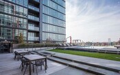 No detail has been spared at this tastefully furnished luxury condo. Enter the unit into the kitchen featuring all modern stainless steel appliances, recessed lighting, and a practical kitchen table and shelving. A closet conceals your own personal washer/dryer units. Large picture windows brighten the unit as you continue into the living area which is fully furnished with writing table, leather sofa and ottomans, coffee table, and an entertainment center complete with Smart TV. The bedroom includes a sumptuous king sized bed, picture windows, drawers, and a walk in closet with ample storage space. The Vio condominium is located in the heart of the stunningly refurbished SW DC Waterfront, Cobblestone paved street streets, concert venues, dining, and shopping all come together here; and you are just steps away from it all. Building amenities at the VIO include a 24-hour front desk, electric-car charging spaces, gym with yoga studio, resident lounge with fireplace and espresso bar, waterfront garden with grill and deck, and a waterfront saltwater infinity edge pool. Tenant is responsible for all utilities, as well cable/phone/internet. No cats, please. Dogs accepted on a case by case basis. Applications are available at To inquire or to set up an in person or virtual showing, please call .