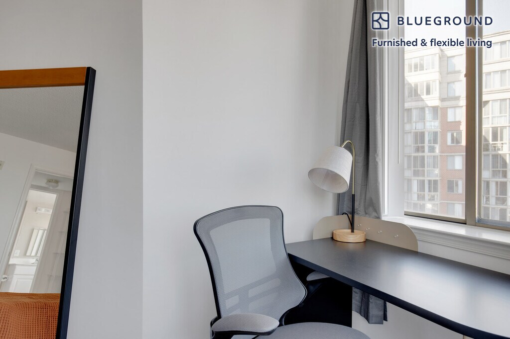 Feel at home wherever you choose to live with Blueground. You’ll love this lovely Northwest Washington furnished one bedroom apartment with its modern decor, fully equipped kitchen, and cheery living room. Ideally located, you’re close to all the best that Washington, D.C. has to offer! (ID #WDC1179) The advertised rate of $2,150/month is the lowest available price, based on a 2 month(s) and 29 day(s) stay with a move-in date of November 4, 2025. If you’re looking for a 1-year stay, the rate is $2,770/month. Rates vary depending on the duration of stay, season, and other parameters. For exact pricing and additional pricing components, please visit our website and enter your desired move-in and move-out dates. The rate is applicable when billed upfront; it can be higher if billed in multiple payments. Brokers are welcome to reach out. Were you looking for an unfurnished lease? Try Blueground instead and upgrade from unfurnished to furnished living: - Furnished at rates comparable to unfurnished - No setup or furniture costs - save thousands - Move-in ready - save time, just bring your suitcase Designed with you in mind As with any Blueground apartment, you’ll find a thoughtfully designed space complete with beautiful furniture and a fully equipped kitchen in this one bedroom property. And, thanks to our superior quality mattresses, luxury linens, and towels, you can relax knowing you’ll always feel comfortably at home. When you’re ready for some fun, you can take in the Washington, D.C. vibes or bring the entertainment to you with the premium wireless speaker or smart TV. This apartment also offers in-apartment laundry. Sleeping arrangements Queen Bed, 63in/160cm Amenities Building amenities unique to this one bedroom apartment include an on-site: - Doorman - Dryer - Elevator - Swimming pool - Washing machine - Lounge - Parking - Pets allowed - Rooftop BBQ Arrival and ongoing support The entire apartment is yours to enjoy! Throughout your stay, you’ll have access to our Client Experience team through the Blueground App. You can schedule additional cleanings, submit maintenance requests, and view our neighborhood recommendations with just a few taps. We’ll share all details upon confirmation of your stay. Other things to note Building amenities may have an extra cost. This Blueground apartment has flexible lease options, allowing you to book it for one month, a year, or more. Pets are welcome, though weight limits and breed restrictions apply and may incur fees. Parking is offered based on availability and is subject to a fee. We take great pride in ensuring every photo displayed is shot in our own units with our actual furnishings. That said, we regularly refresh our decor and furniture arrangement, which may differ from what’s pictured.