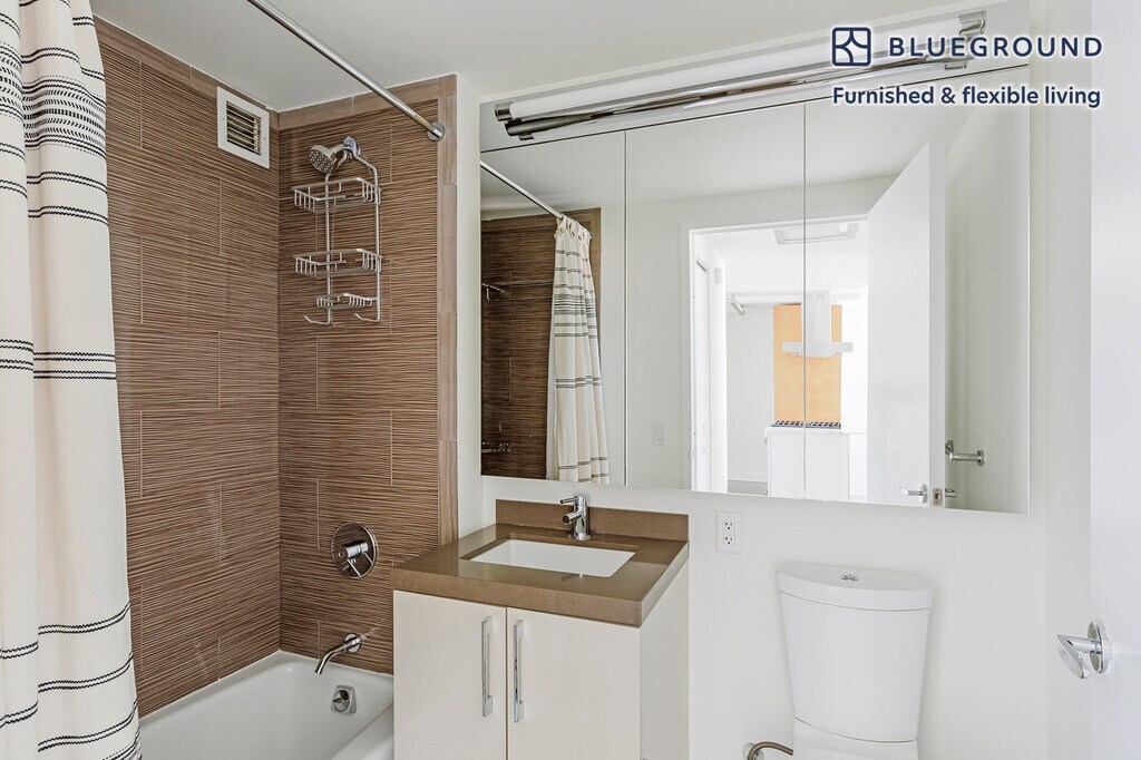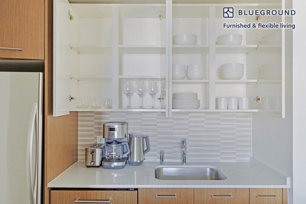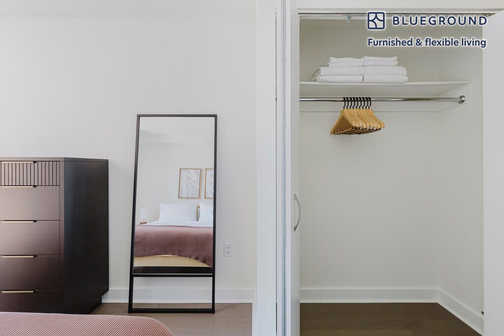 Show up and start living from day one in New York with this cozy one bedroom Blueground apartment. You’ll love coming home to this thoughtfully furnished, beautifully designed, and fully equipped Hell's Kitchen home with stunning high floor views over the city. (ID #NYC1609) The advertised rate of $5,510/month is the lowest available price, based on a 11 month(s) and 29 day(s) stay with a move-in date of September 1, 2026. Rates vary depending on the duration of stay, season, and other parameters. For exact pricing and additional pricing components, please visit our website and enter your desired move-in and move-out dates. The rate is applicable when billed upfront; it can be higher if billed in multiple payments. Brokers are welcome to reach out. Were you looking for an unfurnished lease? Try Blueground instead and upgrade from unfurnished to furnished living: - Furnished at rates comparable to unfurnished - No setup or furniture costs - save thousands - Move-in ready - save time, just bring your suitcase Designed with you in mind Thoughtfully designed with bespoke finishes, modern furnishings, and a fully equipped kitchen, you’ll enjoy that “I’m home” feeling with this Blueground apartment. Whether you’re lounging in your beautiful living room streaming the latest and greatest entertainment on the smart TV or premium wireless speaker, or getting some well-earned rest on the superior quality mattress with luxury linens, you’ll fall in love with everything this Hell's Kitchen apartment has to offer. This apartment also offers in-apartment laundry. Sleeping arrangements Queen Bed, 63in/160cm Amenities Building amenities unique to this one bedroom apartment include an on-site: - Basketball Court - BBQ Area - Doorman - Dryer - Elevator - Game room - Swimming pool - Washing machine - Lounge - Pets allowed - Playroom Arrival and ongoing support The entire apartment is yours to enjoy! Throughout your stay, you’ll have access to our Client Experience team through the Blueground App. You can schedule additional cleanings, submit maintenance requests, and view our neighborhood recommendations with just a few taps. We’ll share all details upon confirmation of your stay. Other things to note Building amenities may have an extra cost. This Blueground apartment has flexible lease options, allowing you to book it for six months, a year, or more. Pets are welcome, though weight limits and breed restrictions apply and may incur fees. Brokes CYOF. We take great pride in ensuring every photo displayed is shot in our own units with our actual furnishings. That said, we regularly refresh our decor and furniture arrangement, which may differ from what’s pictured. [SI]