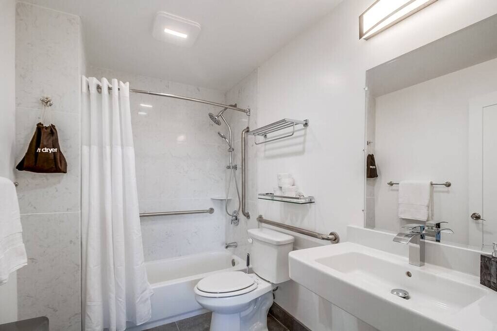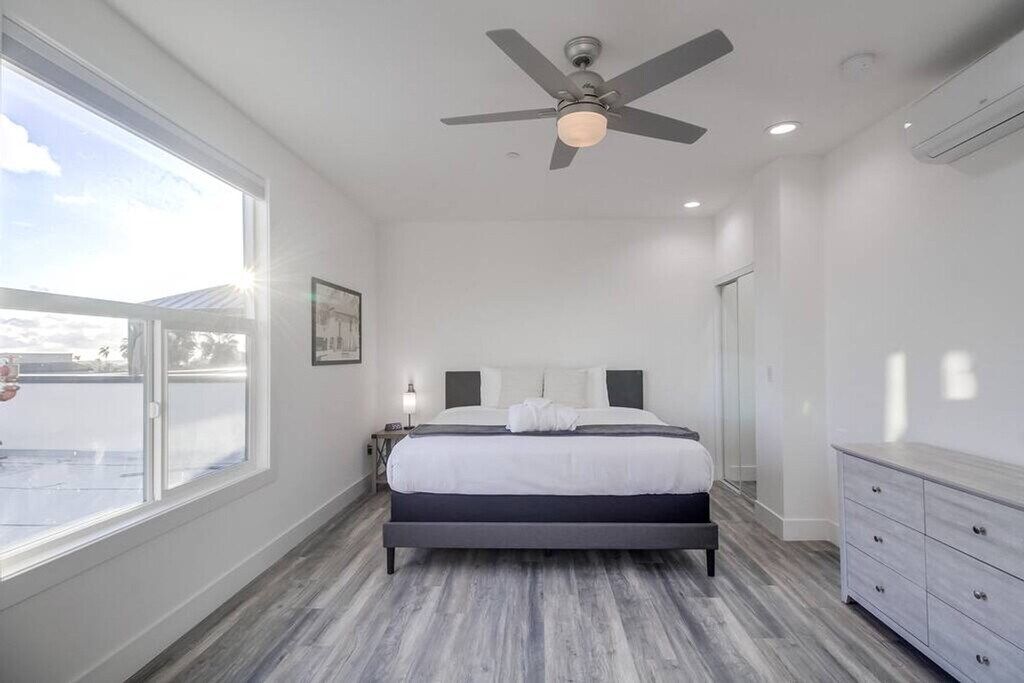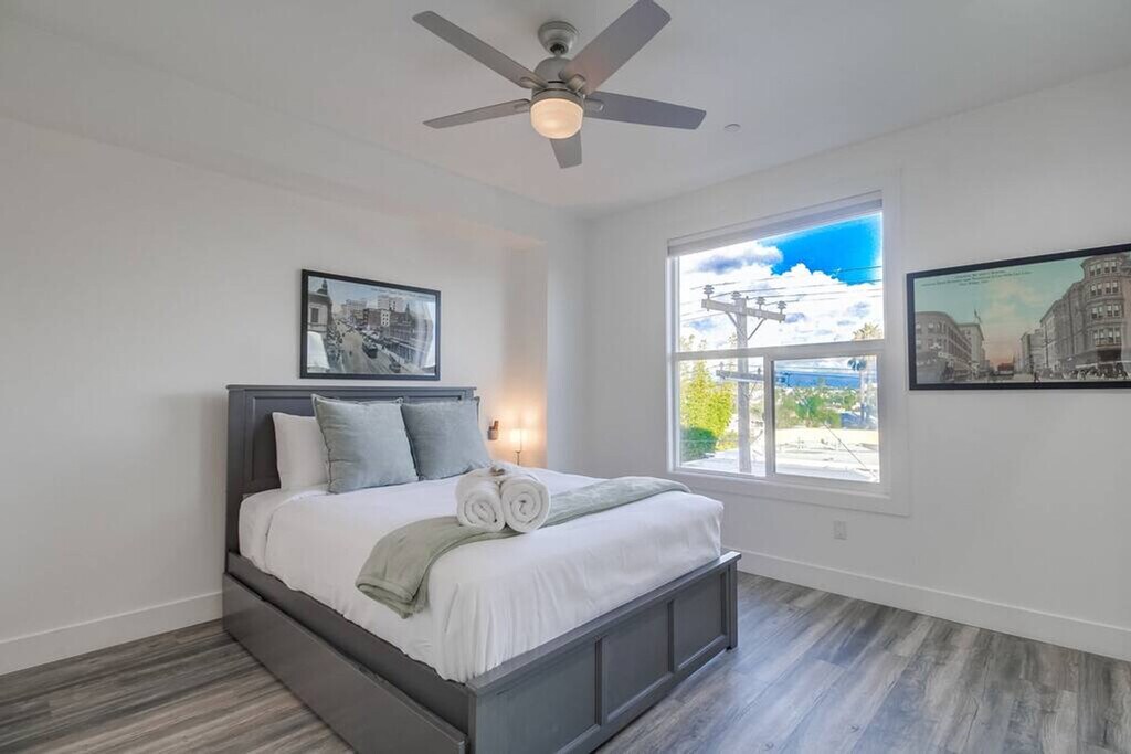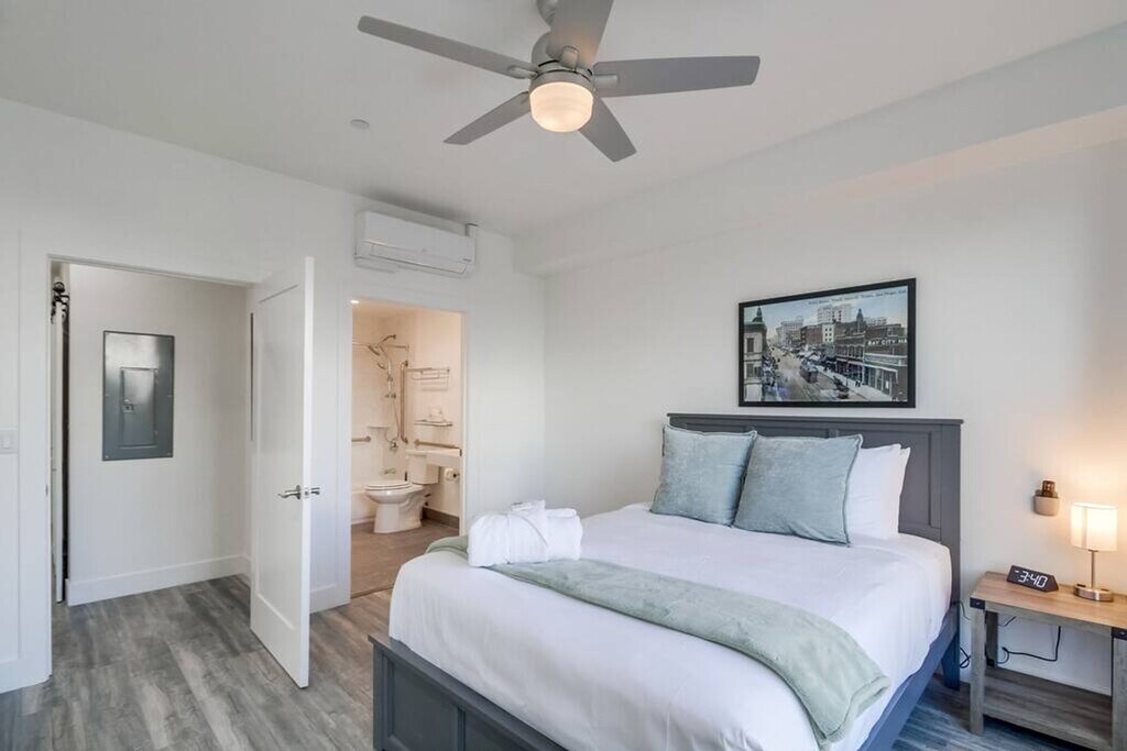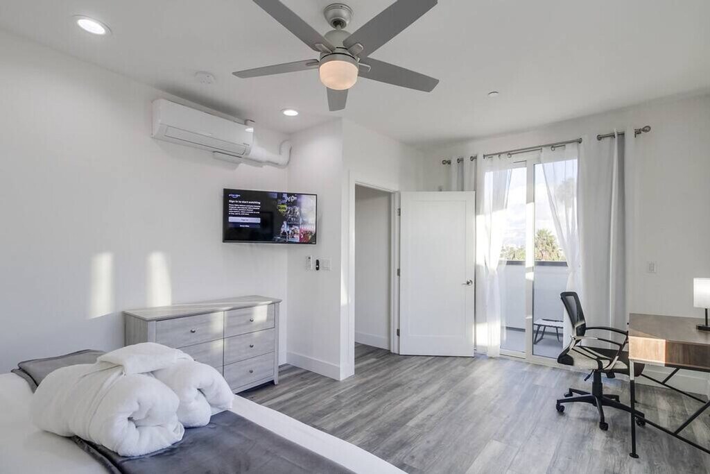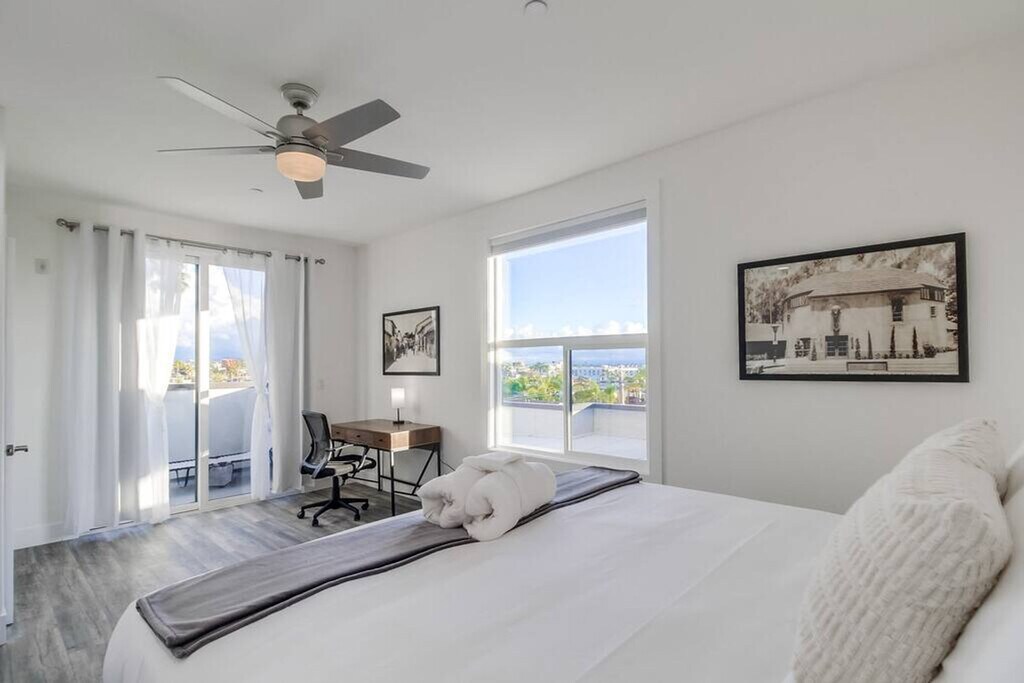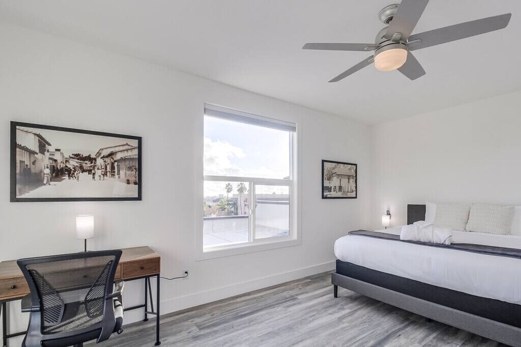 Feel at home in this recently constructed apartment that complies with ADA standards and offers elevator access. This apartment features an open-layout design with 10-foot ceilings that create a light, bright, and airy ambiance. This apartment features a fully stocked kitchen with stainless steel appliances and a smart Samsung refrigerator. Enjoy the private balcony with a propane grill, a primary bedroom with a king-size bed and private balcony with hot tub, a relaxing massage chair, a washer, dryer, and iron, and smart TVs in the living room and both bedrooms. Secure, below-ground parking is available. Nestled around all the entertainment that University Heights offers, this apartment is located in a newly constructed three-story, five-unit apartment/commercial building that provides a modern layout, finishes, and secured parking. Enjoy the vibrant neighborhood with its unique boutiques, eateries, and lively atmosphere. With a walking score of 87, plenty of activities are within reach. For anything outside of the neighborhood, a vehicle or Uber is recommended. With easy access to major thoroughfares, all of San Diego's world-class attractions are just a short drive away, making it an ideal home base for your Southern California adventure. Nearby attractions include the San Diego Zoo (approx. 1.2 miles), Balboa Park (approx. 1.4 miles), Old Town San Diego (approx. 4.2 miles), Little Italy (approx. 4.8 miles), Seaport Village (approx. 5.1 miles), Mission Beach (approx. 8.6 miles), Pacific Beach (approx. 9.3 miles), La Jolla Cove (approx. 12 miles), SeaWorld San Diego (approx. 8.5 miles), Torrey Pines State Natural Reserve (approx. 16 miles), LEGOLAND California (approx. 33 miles), and Disneyland Park (approx. 92 miles). Pets are not allowed. Quiet hours are between 10:00 PM and 9:00 AM. San Diego vacation homes are in jeopardy: please follow these house rules to help preserve our property rights, avoid fines from police and avoid fines from management. If any of the strict rules are violated, we reserve the right to cancel your reservation without refund and immediate eviction may occur. Occupants exceeding the number declared on the reservation will not be permitted to stay past 10PM (children & infants are considered occupants). No more than 3 guests above the stated number of occupants in your reservation are allowed on premises at any time. Only small speakers playing at low volume are allowed outside (noise complaints constitute a violation). There is no smoking of any kind (tobacco, marijuana, hookah) on the property; the fine is $500. Guests may have packages delivered to the property during their reservation dates; however, we strongly advise coordinating deliveries for when you are on-site to receive them. The host cannot be held responsible for any packages that are lost, stolen, or damaged prior to or during your stay. Due to the spa being on the second floor balcony, the only way for the spa vendor to access the spa for servicing is through the bedroom. The spa vendor will knock on the door before entering. Please do not turn them away as the spa may become unusable and require extra maintenance if they are unable to service. They have a code to enter the unit so you do not need to be present unless you wish to be. San Diego now requires all guests to sign a Good Neighbor Policy document prior to staying. We do enforce their policy so it must be signed in order to receive check-in information, but we will make it super easy for you to initial and sign; it can all be done online. Includes a dedicated workspace and high-speed Wi-Fi. Registration Number: STR-06672L [SI]
