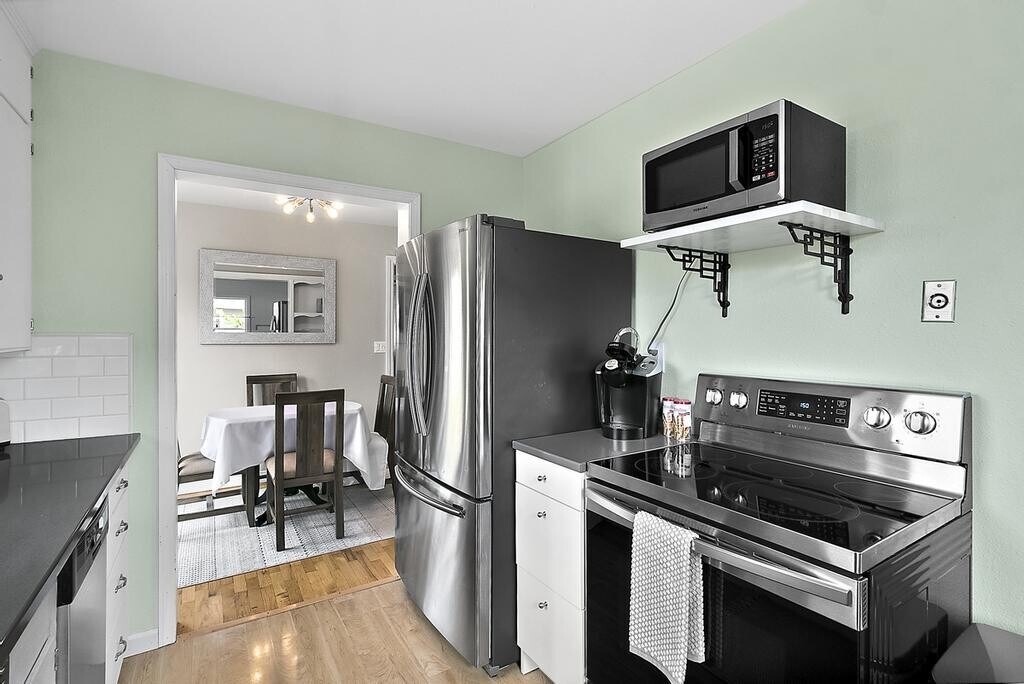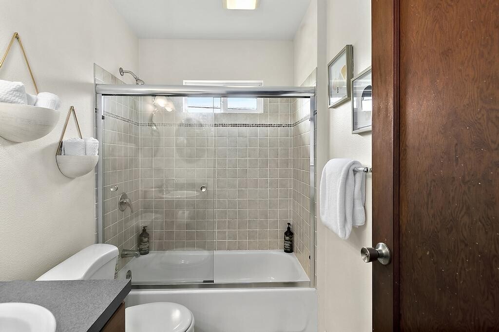Walk to Point Ruston from this beautiful bungalow, complete with a white picket fence, in desirable North Tacoma. This home features gleaming oak floors, air conditioning, a fully fenced yard, and comfortable living spaces. It is close to Point Defiance Park and Ruston Way waterfront, parks, shopping, restaurants, and entertainment, making it an ideal location for your stay. Escape to this bright and cozy 1950s bungalow in the heart of North Tacoma, complete with a private yard and all the comforts of home. Whether you're here for work, transition, or just a change of scenery, this beautifully updated space is ideal for longer stays and peaceful living. The main bedroom offers a brand-new plush king bed with generous storage and calming vibes, while the second bedroom features a cozy queen bed with premium linens. The spacious living area boasts gleaming restored oak floors, original built-ins, and abundant natural light throughout. Enjoy meals in the dedicated dining space with a table for four indoors and French doors leading to your private backyard patio with additional outdoor dining. The modern, fully equipped kitchen is perfect for whipping up your favorite meals, featuring stainless steel appliances, quartz countertops, and all the cookware and essentials you need. Pet stays are allowed with pre-approval and a $50 cleaning fee per animal. The private, fenced backyard is perfect for letting your well-behaved pets roam. Live in the center of it all, just a few blocks from Ruston Way Waterfront, a 2-minute drive or quick walk away. Explore Point Defiance Park and Zoo, the Proctor District, Stadium District, and UPS, all within easy reach. You'll find restaurants, grocery stores, coffee shops, and markets nearby, and it's only 10 minutes to Downtown Tacoma or the 6th Ave District. The home is all yours while you stay, with a private, fenced backyard allowing you to bring your furry family along. A maximum of two pets are allowed per stay with approval on a case-by-case basis, and a $50 pet fee per animal is required for additional allergen and sanitation cleaning. Enjoy contact-free check-in and 24/7 virtual support to limit in-person interaction. The property is professionally cleaned following the guidance of the CDC and the World Health Organization, ensuring high cleaning standards. The home offers blazing fast WiFi and ample workspace, making it remote work-friendly. Enjoy digital self-check-in and on-call local support whenever you need it. Utilities are always included, even for longer stays, and you'll have access to a washer and dryer. [SI]