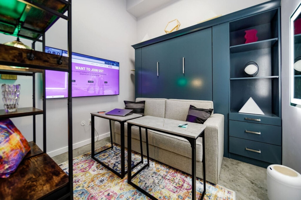 The advertised rate of $5,027/month is the lowest available price, based on a 30 day(s) stay with a move-in date of July 16, 2026. Rates vary depending on the duration of stay, season, and other parameters. For exact pricing and additional pricing components, please visit our website and enter your desired move-in and move-out dates. The rate is applicable when billed upfront; it can be higher if billed in multiple payments. Feel at home in this bright, modern, and surprisingly quiet 2-bedroom condo in East Austin, comfortably sleeping up to eight. Inside, you’ll find a large, comfortable great room designed for gathering, relaxing, or working. The bedrooms are private and versatile, converting into meeting rooms when needed. This apartment features two private bedrooms that convert into meeting rooms, each with a 65-inch 4K TV, amazingly comfortable queen beds designed for restful sleep, two leather sofas with queen pull-out beds, a large open great room with an 85-inch 4K Samsung TV, a fully stocked modern kitchen, a modern bathroom with washer and dryer combo, fast, reliable Wi-Fi, and strong air conditioning. Step outside and you’re in the heart of East Austin, surrounded by coffee shops, breakfast spots, food trucks, murals, live music, and some of the city’s best bars and restaurants. You’re minutes from downtown Austin, the University of Texas, and the airport. Maximum occupancy is 6 people. Any additional people must be pre-approved prior to final reservation. Only registered guests are allowed at the apartment. Any visitors must be disclosed and approved. [SI]