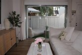 A boutique style townhome is awaiting your company. This 2/2.5 updated resort offers above the standard rental. Welcome your guests thru the artificial grass terrace, giving your guest a quick glimpse of what to expect next. Once inside, you’ll enjoy recently updated wood floors throughout. Next, your eyes will veer towards the renovated kitchen w/ clean, but modern, white cabinetry & black hardware pulls. Enjoy meals at the pull up bar or your very own dedicated dining area. While downstairs, you can open the terrace slider to inside/out living for you & your guests to enjoy. Privacy remains, as each large bedroom, each with its own ensuite, is located on the second level. Don’t miss this opportunity as it is located in the heart of the city, alleviating you from long commutes to town. Una casa adosada estilo boutique espera su visita. Este resort renovado de 2 dormitorios y 2 baños ofrece un precio superior al alquiler estándar. Reciba a sus invitados a través de la terraza con césped artificial, dándoles un vistazo rápido de lo que les espera. Una vez dentro, disfrutará de los pisos de madera recientemente renovados. A continuación, su mirada se dirigirá a la cocina renovada con gabinetes blancos, limpios pero modernos, y herrajes negros. Disfrute de sus comidas en la barra de dominadas o en su propio comedor. En la planta baja, puede abrir la terraza corrediza para disfrutar de la vida interior y exterior, tanto para usted como para sus invitados. La privacidad se mantiene, ya que cada amplio dormitorio, cada uno con su propio baño, se encuentra en el segundo nivel. No pierda esta oportunidad, ya que está ubicado en el corazón de la ciudad, lo que le ahorra largos desplazamientos.