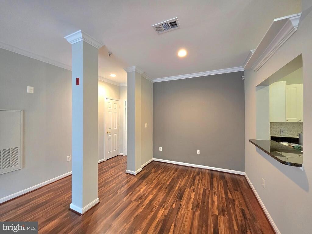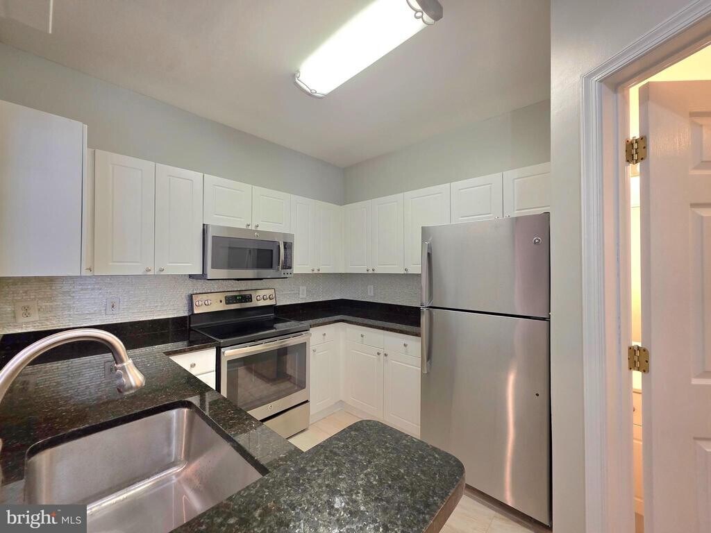 4560 Strutfield Ln #1203 is a recently renovated two-bedroom, two-bath condominium ideally located close to the community clubhouse and pool within the desirable Palazzo at Park Center. The unit features updated flooring and fresh paint throughout, creating a bright, modern feel. The open dining and living area flows seamlessly together, highlighted by a bar counter that connects the kitchen to the dining space-- perfect for casual meals or entertaining. The kitchen showcases black granite countertops, stainless steel appliances, and a designer backsplash that adds a contemporary touch. A large private balcony extends the living space outdoors, offering a comfortable area to relax. The unit also includes a washer and dryer in unit for added convenience. Both bedrooms feature spacious walk-in closets, providing ample storage. The main bedroom suite includes a dual vanity and a large soaking tub, creating a comfortable and functional retreat. Overall, this home combines thoughtful updates, an efficient layout, and access to strong community amenities in a highly convenient Alexandria location. No cats. Up to 2 dogs, 50 lbs max, with breed restrictions.