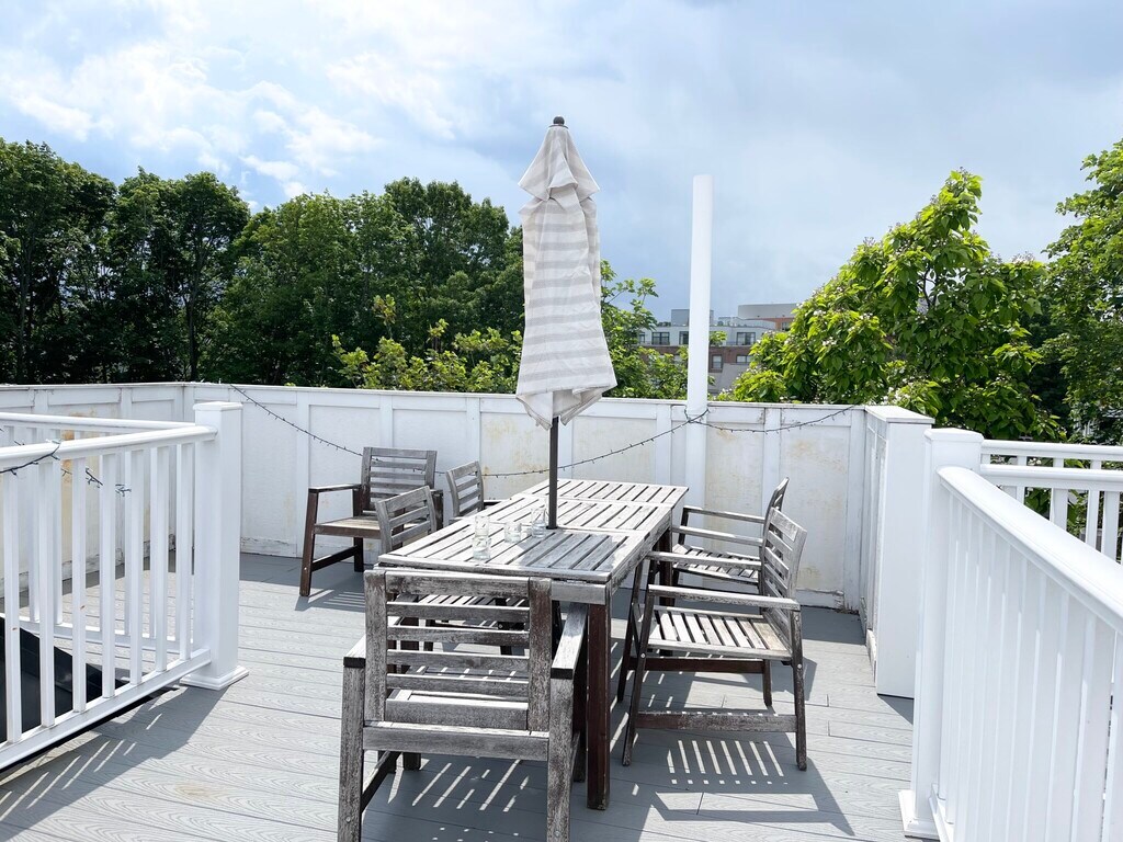 -Newly renovated -central AC/central heat -large private back porch -finished roof deck (shared with other units in the building) -chef's stove/oven -beaming hardwood floor -free laundry in building -one off street parking included -large open living room with a separate area for office -free lockable storage room in basement -1.2 miles to longwood medical area -0,5 miles to Brookline Hills green line D line (two stops to Longwood) -hot water/water/sewer included