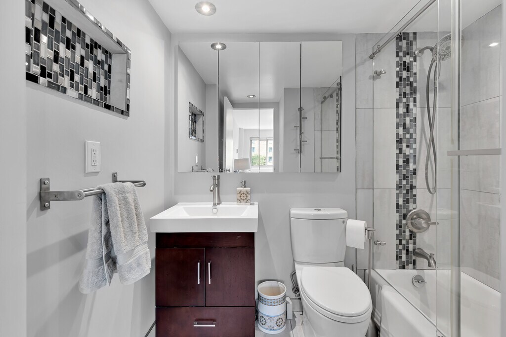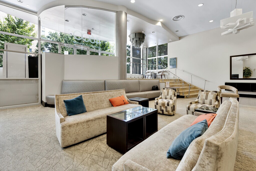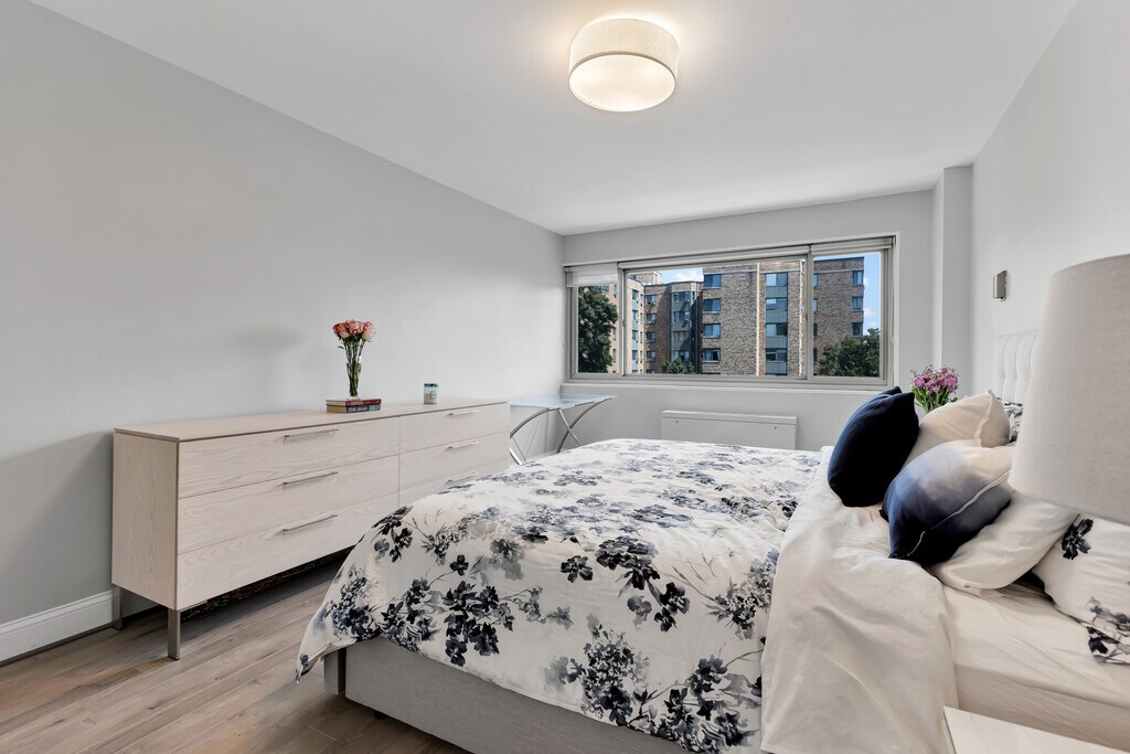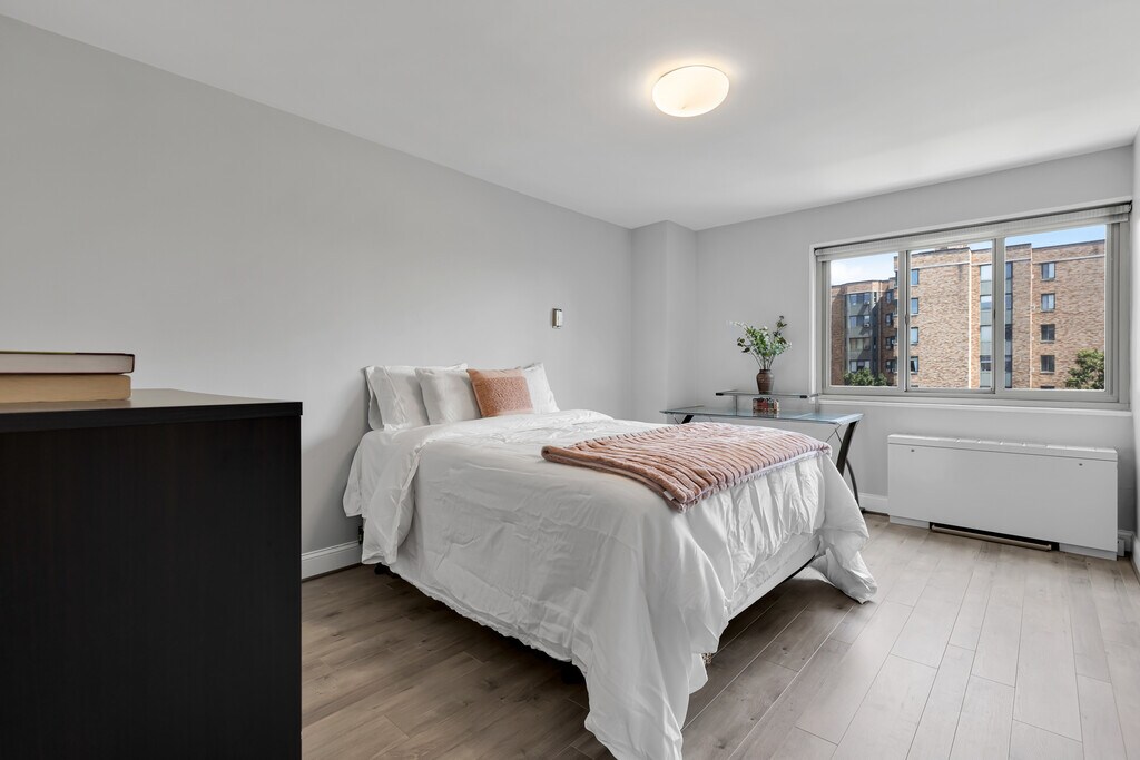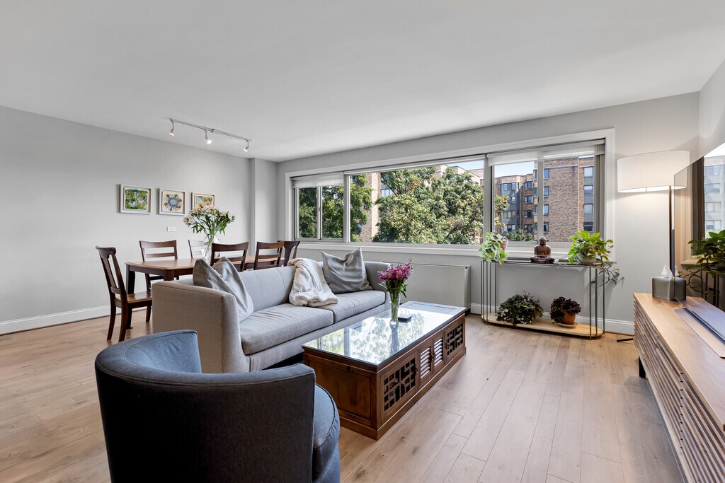 Welcome to this 2 BR, 2 BA condo with a wall of windows. Upon entry, you will notice the open layout, gorgeous updated kitchen, spacious living & dining rooms, as well as abundance of natural light throughout. The kitchen and bathrooms have been renovated to perfection to create a functional home that provides ample work form home spaces as well as gathering spaces for every day living and entertaining. The renovations accentuate the modern aesthetic and maintain a warm and homey feeling. The oversized kitchen with a large island, stainless steel appliances, quartz counter top, and beautiful tiled backsplash is ideal for cooking and entertaining. The condo fee includes all utilities (except internet). It has 24-7 full-service management at the front desk, a private building-owned landscaped park and grounds designed by one of the city's leading landscape architects and certified as natural habitat, a large lobby and ADA compliant entrance, a fitness center, a roof deck with spectacular views. In-unit washer - a big plus. Parking is available on a rental basis, contact building management for more information. Distinguished as one of the most sustainable apartment buildings in DC by the U.S. EPA, it has a solar hot-water system, solar P-V system, DC Riversmart stormwater credits, and recycling program. You are an 5-minute walk to two METRO stations, Van Ness and Tenleytown, and a 5-minute walk to some of the city's finest shops, restaurants, and more - including Breadfurst, Calvert Woodley Wines, Politics & Prose, and Comet Ping Pong. The building is also in direct proximity to Rock Creek Park, Forest Hills Park and Playground, and Wilson Aquatic center. Food Shopping is convenient, with options including Whole Foods, Giant, MOM's Organic Market, and other local markets. 12-month lease available from Feb 1 2026. All utilities are included in the rent (except for internet). Street parking is available; On-site parking in the garage can be obtained by entering in the waiting list and for an additional monthly fee. Pets are not allowed (building policy).