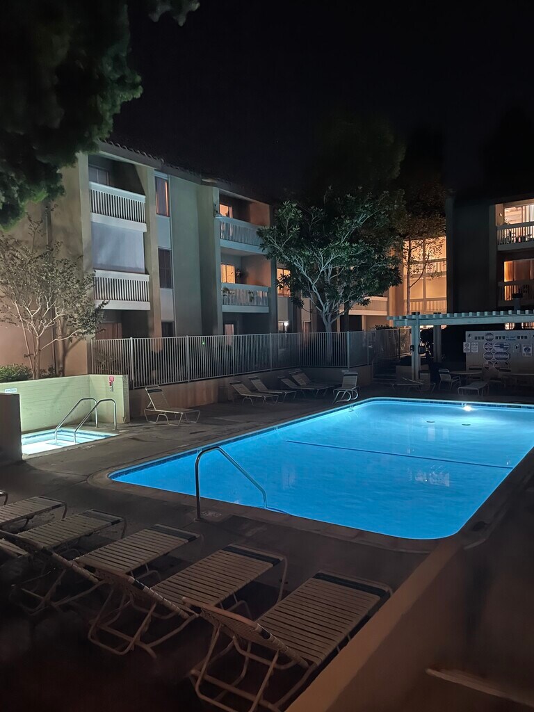The Plaza Condominium Association -Price just decreased! Great Location! Close to all- walk to great shopping, international restaurants, bars, coffee shops, Von's, Trader Joes, Sprouts, fitness studios, and much more. Beach is 10 blocks away, bay is 8 blocks, with great boardwalks along the beach and bay that are perfect for walking, jogging, and riding bikes. No other place has as many amenities. 4 pools and spas, 5 tennis courts, billiards, ping pong, exercise room (with sauna), lagoon. Use a community BBQ and have lunch poolside, or at the tranquil lagoon. There is a study/reading room in the lobby, with wifi and lots of books for exchange. Plenty of closet space in the unit. Security building, with underground assigned parking. W/D on site. No smoking. No Pets.