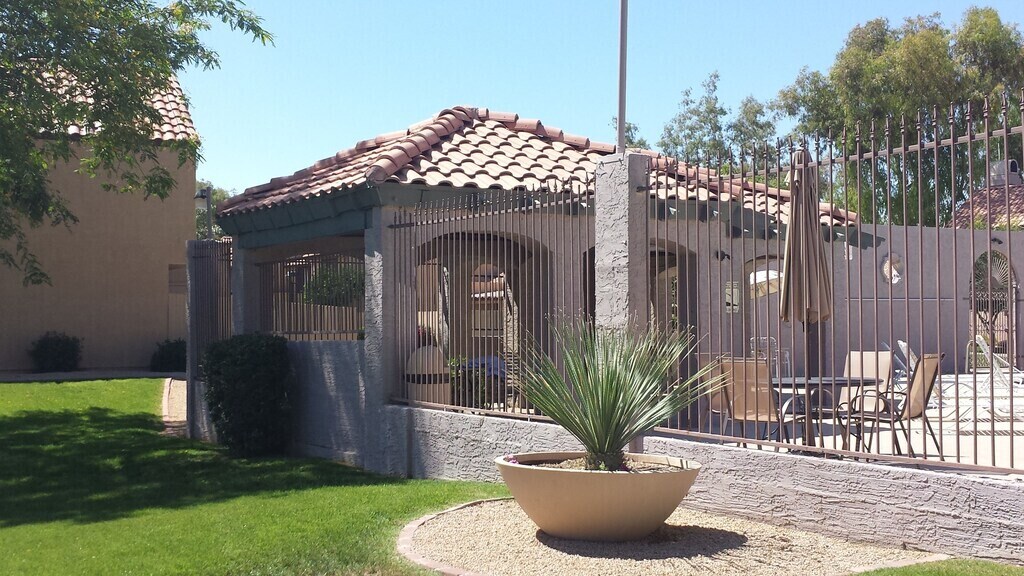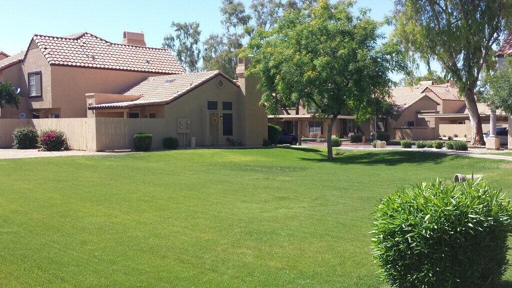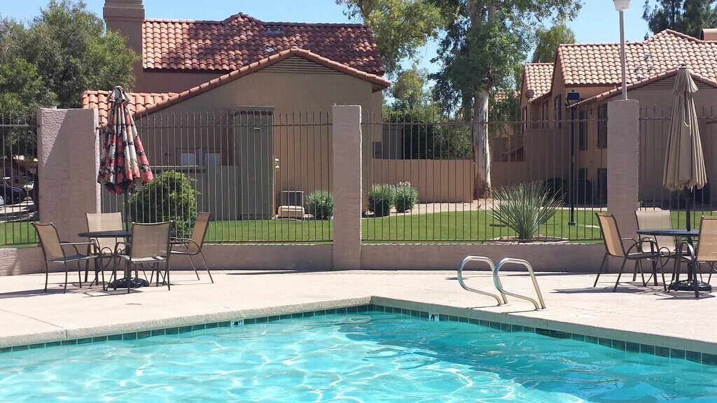 Enjoy the warm Arizona sunshine, sit by the community pool, play golf, go shopping or enjoy professional sports! This townhouse is newly remodeled, updated and fully furnished. Spotlessly clean, ready for rental. The townhouse is 2 bedrooms with 2 attached full bathrooms. Enjoy the outdoor patio, bright open floor plan, large community pool and greenbelt area.