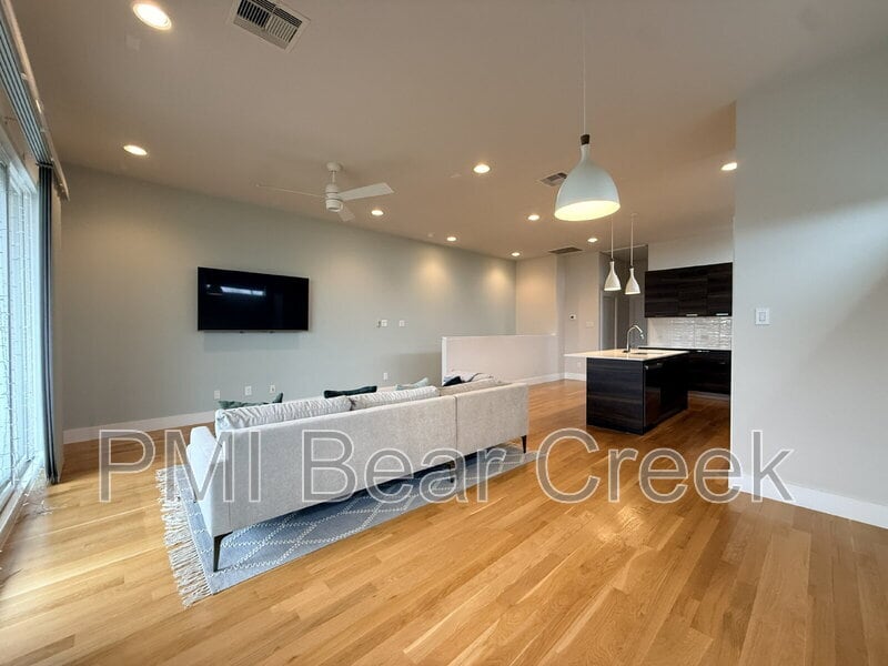 Welcome to this stylish and fully furnished 3-bedroom, 2.5-bathroom townhome located in the heart of Houston, just minutes from, Downtown, the Medical Center, the Galleria, all major sports stadiums, the Convention Center and up and coming East River Project & Golf Course. Property features spacious layout spread over two thoughtfully designed levels. Master suite is located on the second floor with a private balcony, en-suite bathroom with soaking tub and separate shower, and ample closet space. Two additional bedrooms on the first floor, one is set up as a home office with a computer desk and monitor, ideal for remote work or study. Modern living area on the second-floor features open-concept kitchen, dining, and living room is perfect for entertaining, featuring stylish finishes, contemporary furnishings, and a second balcony with city views. Two car garage features electric car charging port. Fully equipped kitchen includes all major appliances, cookware, and utensils, ready for immediate use. Home is tastefully decorated and thoughtfully curated with high-end furnishings and decor to ensure a comfortable and elegant stay. Whether you're in town for business, relocating, or simply want a move-in-ready space in a prime location, this townhome offers the perfect blend of convenience, comfort, and style. Pet Details: issues a FIDO score for pets. All approved pets are subject to a minimum one-time pet acceptance fee between $25.00-$150.00, per pet and pet rent from $25 - $150 based on the FIDO score.