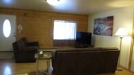This structure is a side by side log duplex with garages in the center nestled among the black spruce and birch trees of the Interior of Alaska. Location is very private at end of road with little traffic. It is only a mile from the gate of Eielson Air Force Base in Moose Creek, Alaska.Non Smoking, No Pets