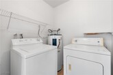 This 1st-floor unit offers 2 bedrooms and 1 bathroom with tile and wood flooring throughout—no carpet. The kitchen includes all appliances, and the living room features a wood-burning fireplace. The interior has been freshly painted, and a full-size washer and dryer are included in the unit.