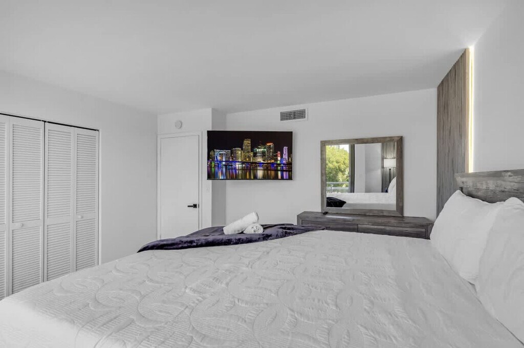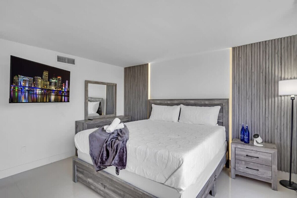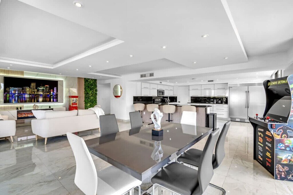 Feel at home in this newly renovated, 2200-sqft paradise apartment on the 3rd floor in the heart of Hallandale Beach. This waterfront apartment offers sunrise and sunset views and features 3 bedrooms and 3 bathrooms. Designed with comfort in mind, this apartment features 2 balconies with waterfront views and a workout station, high-speed free Wi-Fi, a pool, 1 free assigned parking space, and a washer and dryer in the unit. Entertainment options include arcade games and smart TVs in all 3 bedrooms. Air mattresses can be provided upon request. Boat and Jet Ski rentals are available. This apartment is centrally located within 0-1 mile of Shuls, groceries, and restaurants, and 1 mile from the beach. Aventura Mall is an 8-minute drive, Fort Lauderdale Airport (FLL) is a 15-minute drive, Brickell/Midtown is a 20-minute drive, Miami International Airport is a 25-minute drive, and South Beach is a 30-minute drive. Ride-sharing services like Uber or taxis are highly recommended for getting around. If you are coming with more than 1 car, you will need to use street parking for $25 a day. [SI]