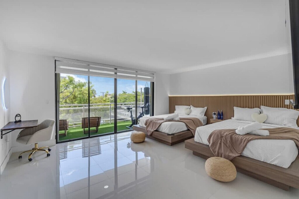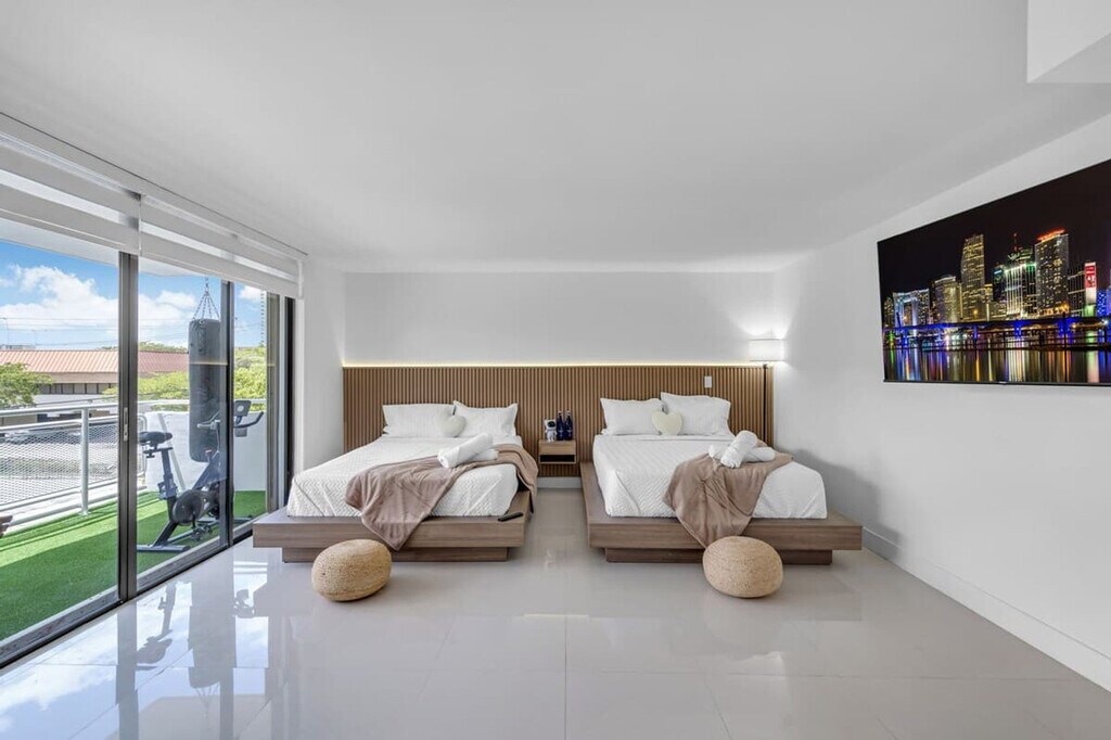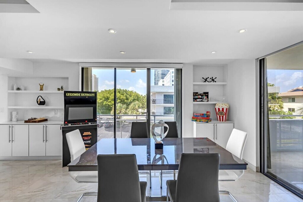 Feel at home in this newly renovated 3rd-floor paradise apartment, located in the heart of Hallandale Beach. This 2200sqft² (202m²) getaway offers waterfront views of the sunrise and sunset, and features 3 bedrooms and 3 bathrooms. Furnished and designed with comfort in mind, this apartment includes high-speed free Wi-Fi, a pool, washer and dryer in unit, arcade games, and more. Enjoy the waterfront view from one of the 2 balconies, one of which includes a DIY workout section. One free assigned parking space is included with your reservation. Air mattresses can be provided upon request. This apartment is centrally located, with Shuls, groceries, and restaurants within 0-1 mile and the beach just 1 mile away. Aventura Mall is an 8-minute drive, Fort Lauderdale Airport (FLL) is 15 minutes away, Brickell/Midtown is 20 minutes away, Miami International Airport is 25 minutes away, and South Beach is 30 minutes away. Ride-sharing services like Uber or Taxis are highly recommended for getting around. Street parking is available for additional vehicles at $25 a day. [SI]