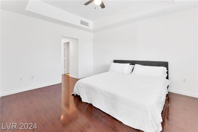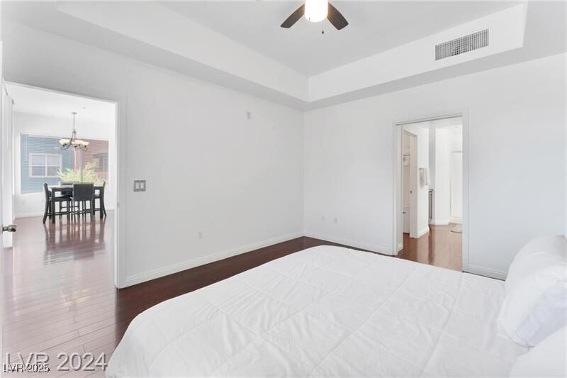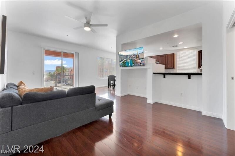 Welcome to this stunning 2-bedroom, 2-bathroom mid-rise condo located within Park Avenue, in Las Vegas. Situated on the 4th floor of a secure Guard-Gated community, the Amenities indoor/outdoor pool and spa, BBQ area, a fully equipped gym, and tennis courts. As you step inside, you'll notice the plush carpet throughout. The kitchen boasts a convenient breakfast bar and comes fully equipped with all appliances. Ceiling fans are installed throughout the condo. One of the highlights of this home is the huge balcony. The primary bedroom features a built-in vanity, adding a touch of elegance. The bathroom offers a tub/shower combo, providing options for a relaxing soak or a quick rinse. For added convenience, a washer and dryer are included within the unit. Schedule a showing today! *Small Pets Welcome. $250 Non-refundable Pet Fee Per Pet