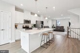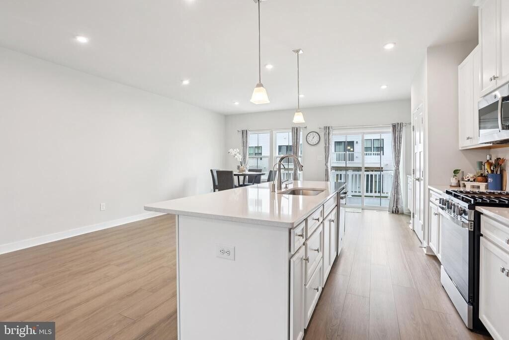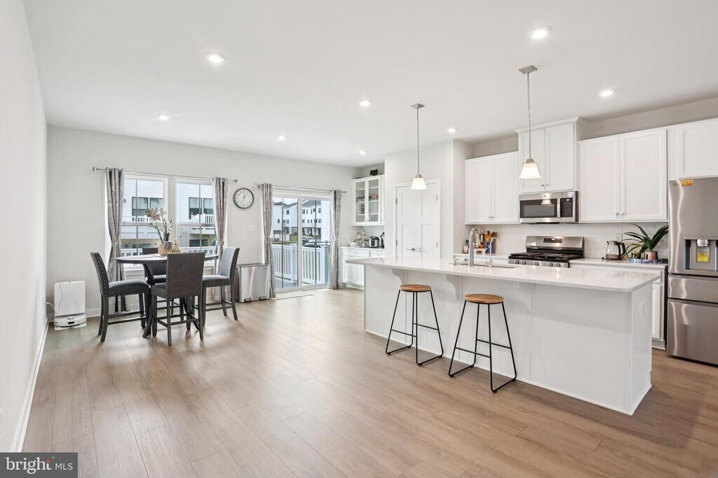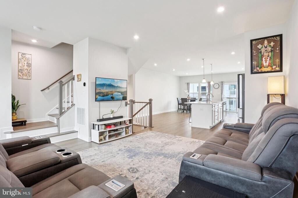 Must see this one!! It has an extended bump out with additional cabinetry in the kitchen area. Also, the extended space in the lower level features a FULL bathroom! Welcome to this stunning, just one-year-young North East facing 3-bedroom, 3 full bath, 3-story townhouse offering abundant natural light, modern design, thoughtful upgrades, and exceptional versatility—featuring premium enhancements not found in other homes in the community! The main level showcases a bright, open-concept floor plan highlighted by upgraded luxury vinyl plank flooring throughout the living room and kitchen area. The beautifully appointed kitchen features quartz counter tops, abundant cabinetry, and a rare builder-upgraded extension complete with a custom hutch and elegant glass-accent cabinetry—an exclusive feature that truly sets this home apart. Step outside to your maintenance-free deck just off the kitchen, perfect for relaxing or entertaining while enjoying full natural lighting. Upstairs, the spacious primary suite impresses with a tray ceiling, recessed lighting, a walk-in closet, and a luxurious en-suite bath featuring dual vanities, tile surround, a jacuzzi-style soaking tub, and a separate standing shower—creating a true spa-like retreat. Two additional bedrooms and a full bath complete the upper level. The first floor offers incredible flexibility with a large recreation room, two walk-in closets, and a full bathroom—ideal as a guest suite, home office, or potential 4th bedroom. Sliding glass doors lead to the backyard, extending your living space outdoors. Additional highlights include a one-car garage and numerous upgrades throughout that distinguish this home from others in the neighborhood. Move-in ready and beautifully maintained, this home is a true standout! Conveniently located to Rt. 38, Rt 295, Turnpike, Costco, & Philadelphia just 14 minutes!