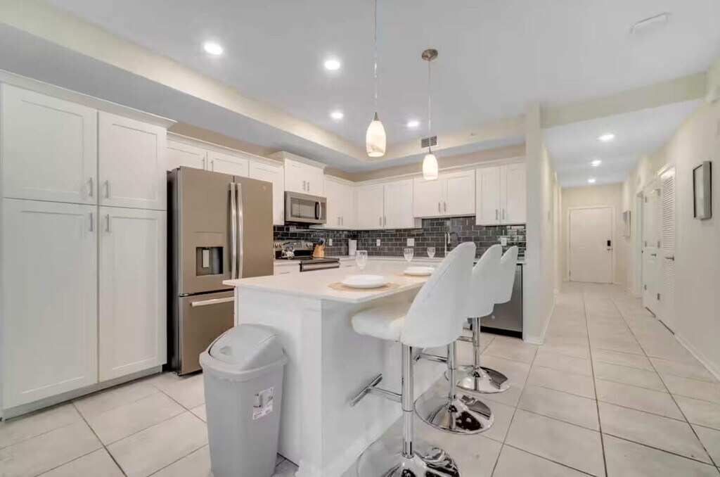 Feel at home in this spacious retreat located only 5 miles from Disney. This modern getaway is ideal whether you’re seeking relaxation in luxury or diving into adventure. Located in a stunning resort-style community, you’ll enjoy exclusive access to the water-park-style clubhouse with thrilling slides, a lazy river, splash pad, jacuzzi, and a resort-style pool. Mid-stay cleaning is available for reservations over 3 days in duration for an extra fee and will need to be booked in advance. A pack 'N Play Crib and a highchair are available for $40 each as a one-time fee. Located right off the Osceola Parkway in Kissimmee, the resort has easy access to major Orlando attractions such as Disney World, Universal Studios, and SeaWorld. Storey Lake is right down the W Osceola Pkwy from the Loop Shopping Center with dining and a movie theater. Head just west on US Highway 192 to visit the Kissimmee Old Town theme park with food, shops, and rides, or the Fun Spot America Kissimmee amusement park with arcade and go-karts. There is spectacular outlet shopping close by with two huge outlets to choose from. Quiet hours are between 10:00 PM and 7:00 AM. Parties, events and smoking/vaping of any kind are prohibited in or around our property and risk a fine of $150 and/or your full deposit will be forfeited. Late departures will result in a fine of $150 for each additional hour the property cannot be accessed for turnover. Large messes will result in an additional cleaning fee. Outside of service animals, pets are not permitted at this property, and any evidence of pets will result in a fine and/or forfeiture of your full deposit. Firearms and weapons are strictly prohibited in our home. To help ensure a safe and trusted experience for all guests, ID verification may be required after booking. [SI]