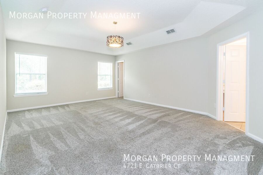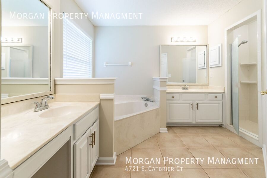 This gorgeous 4 bedroom, 2 bath single-family home is located on a cul-de-sac, has 2250 sq ft, a large fenced-in back lawn with a built-in grill on the patio for entertaining friends and family. Beautiful nature preserve is behind property for total privacy! Double car garage with an inside laundry room for convenience. Bedrooms are a split plan with wood floors and new plush carpet. COMMUNITY AMENITIES INCLUDE: Gym, swimming pools, cafe, basketball courts, tennis courts, skate park, volleyball court and playgrounds. Sorry NO PETS! CONTACT US FOR QUESTIONS Ext. 104 *** Se Habla Español TENANT CHARGES: Application Fee = $75 per adult Lease Initiation Admin Fee = $95.00 (Admin Fee waived for Active Military) Security Deposit Minimum = one months rent Minimum 580 credit score Resident Benefits Package (RBP) = $50.00 per month (not optional) TO APPLY: Visit the vacancy page to our website: $75.00 per adult, non-refundable Application Fee. Please review the application criteria. All applicants must complete the pet screening whether or not they have a pet. Screening includes credit/criminal background check, income verification of 3x the monthly rent and rental history verification. Built In Grill On Patio Built In Microwave Cafe Community Exercise Room Community Pool Community Tennis Court Fire Place Large Fenced Backyard Located On Cul De Sac Master Bedroom Suite Playgrounds Se Habla Español Skate Park Split Bedrooms Two Car Garage Volleyball Court Washer/Dryer Hook Ups Wood Floors