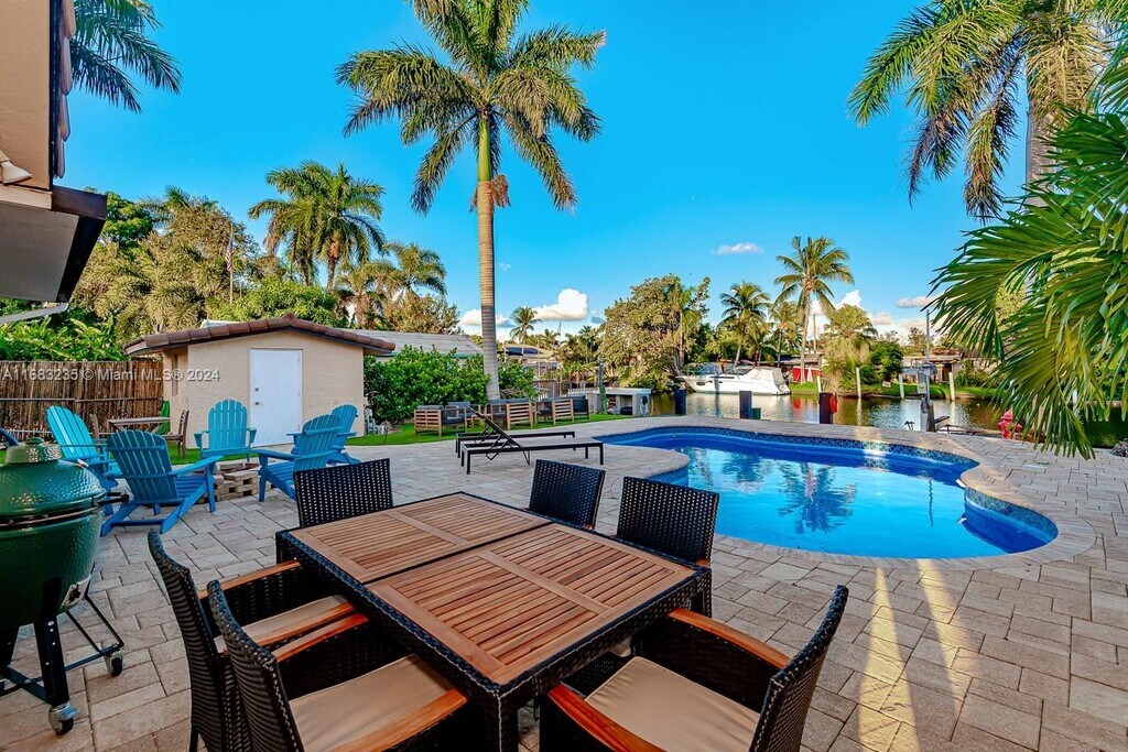 5 Bedroom/ 4 bath home next to synagogue. Home features direct ocean access with 20ft fixed bridge, impact doors/windows, new 15k pound boat lift with warranty, newer tile roof, new dock with ipe exotic hardwood, new pool diamond brite, new artificial grass,16 ft ceilings, new Tankless WH, new custom kitchen, shed, the list goes on. This property features over 2500 sq feet. The 4th and 5th bedroom are currently being used as office and storage. Pool room is 5th bedroom with private entrance and kitchen as well as 3rd bedroom has private entrance, This home is located close to the new Hard Rock Casino, Dania Pointe, Fort Lauderdale airport/ Las Olas. All information deemed correct but not warranted and to be verified by buyer. Furniture also for sale. FULLY FURNISHED! DREAM HOME