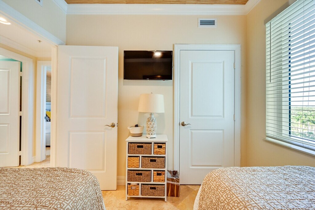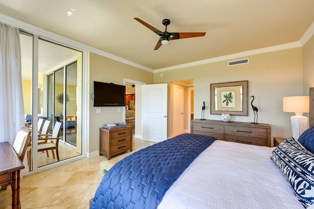 Feel at home in this lovely 3-bedroom, 3-bath condo in Estero, nestled within the gates of West Bay Club. The elevator opens directly into the unit, providing step-free access. This condo offers a screened porch with a dining area and expansive views of the Gulf of Mexico. It is equipped with 3 Smart TVs, board games, books, and ceiling fans. The kitchen features cooking basics, a refrigerator, microwave, stove/oven, dishwasher, dishware and flatware, blender, coffee maker, ice maker, toaster, and spices. You'll also find free Wi-Fi, a washer/dryer, linens/towels, central air conditioning and heating, hair dryers, hangers, and an iron/board. Enjoy access to community amenities such as the Tennis & The Net tennis center, pickleball, lighted bocce, 2 swimming pools, a game room, Aqua Cafe, 2 fitness centers, and kayaks. Parking is available in a reserved spot in the community garage for one vehicle. Enjoy a convenient location with thrilling resort amenities, including 2 pools, a game room, and more. When you’re not lounging poolside, bask in the sun at Barefoot Beach or enjoy some retail therapy at the Coconut Point Mall. Smoking and vaping of any kind, pets, events, parties, and large gatherings are not allowed. This property has a 30-night minimum, enforced by the HOA. Guests must be at least 25 years old to book, and a photo ID may be required upon check-in. [SI]