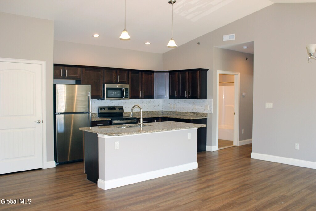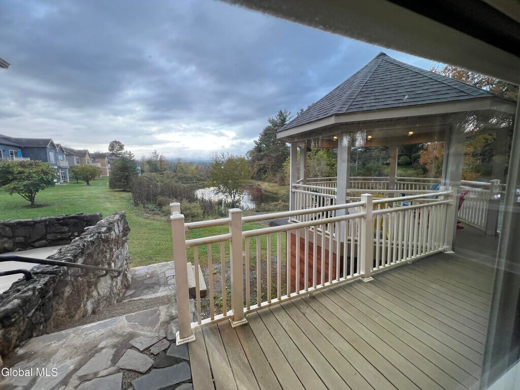 Kathleen KosekWelcome home to Mill Hollow living! Experience everything you could dream of in this upscale community,complete with breathtaking views of the Helderberg Mountains. This stunning second-floor 2-bedroom,2-bath chalet features 9-foot ceilings,oversized windows,and a sliding glass door leading to your own private balcony that overlooks a nice size back yard with a complimentary gas grill added for your enjoyment. Enjoy an open floor plan with granite countertops,brand-new stainless steel appliances,a kitchen island,central AC and an in-unit washer and dryer. The spacious primary suite offers a large walk-in closet,ceiling fan,and a luxurious bathroom with granite counters and double sinks. Residents have full access to the community's Clubhouse,theatre,kitchen,fitness center,in-ground saltwater pool,gazebo overlooking scenic pond,and newly added gated dog park—with pickleball courts coming soon! Plus,our game room and communal area provide additional spaces for entertainment and relaxation. Garages are available for rent,on a month to month basis and there's plenty of on-site parking. Don't wait—schedule your private showing today. You won't be disappointed!