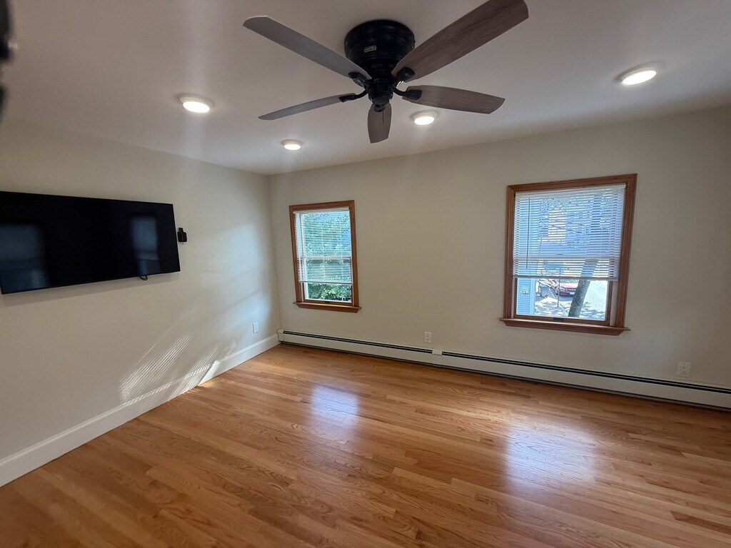 Brand new renovated duplex on top floors of Brighton multi-family that features: - Hardwood flooring throughout 1st floor! - High end, fully equipped eat in kitchen! - Stainless appliances inc dishwasher! - Generously sized bedroom off kitchen! - Spacious & sun filled living room! - Wall mounted flat screen TV included! - Bonus 1st floor office or small bedroom! - Luxuriously updated full bath on each floor! - 2 large & equally sized top floor bedrooms! - Large closets & ample storage space! - Private rear porch overlooks shared yard! - Laundry machines in renovated basement! - 2 off street parking spaces in driveway!