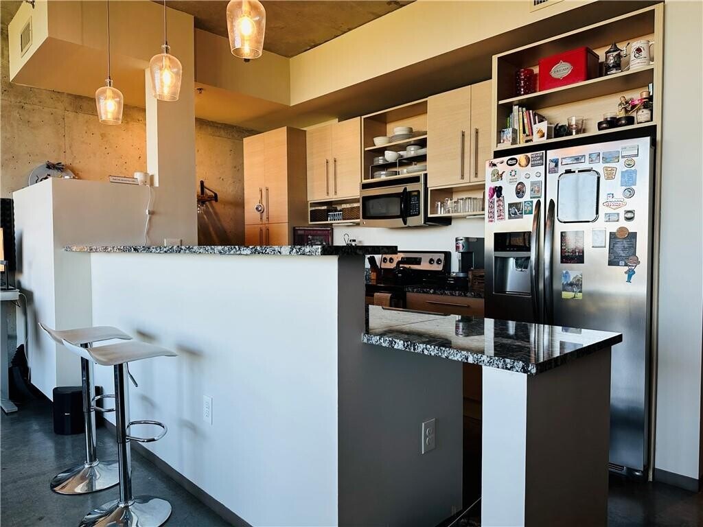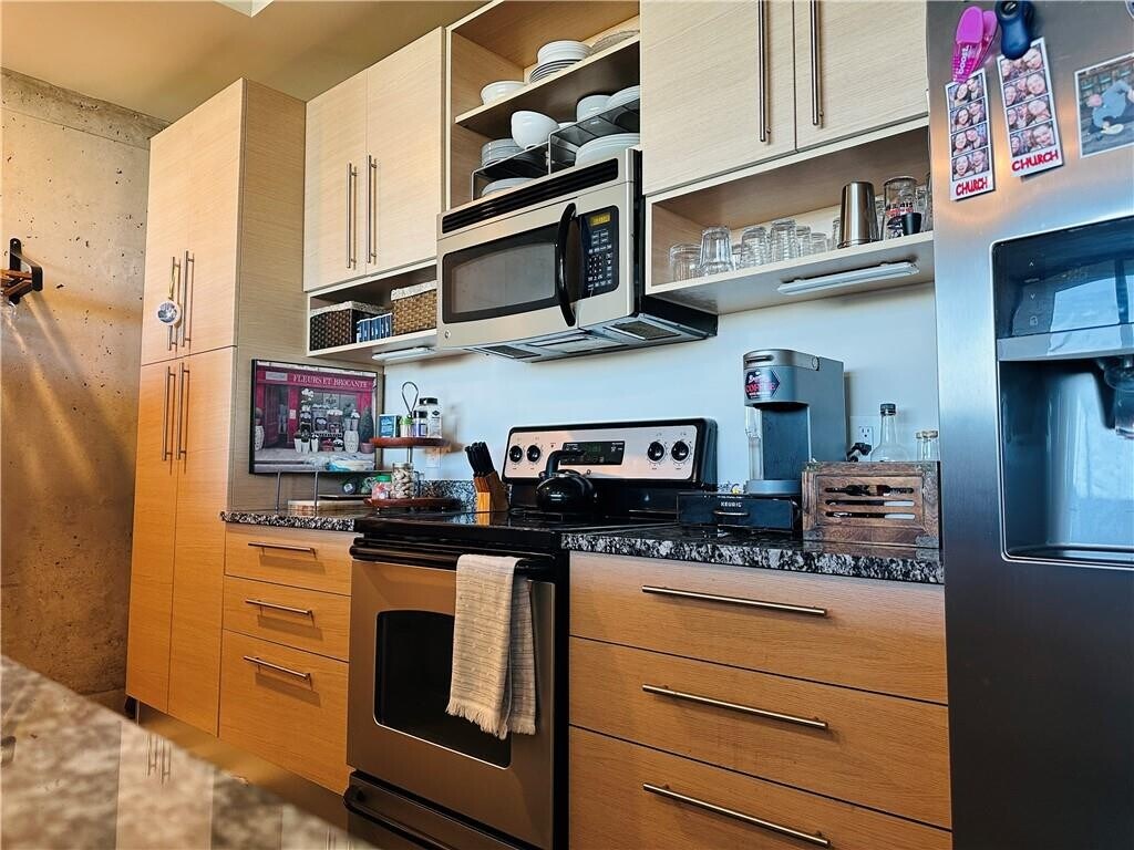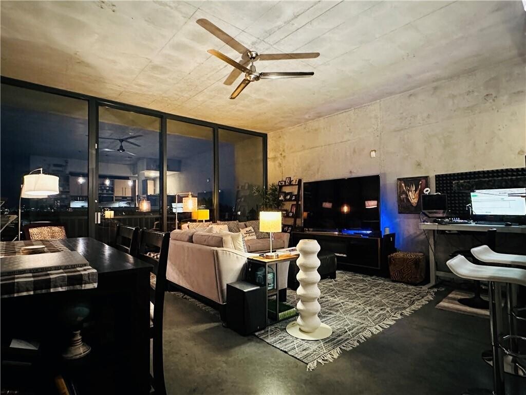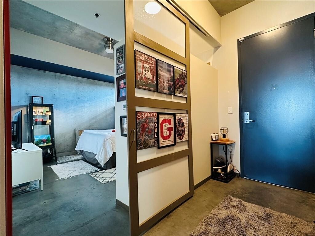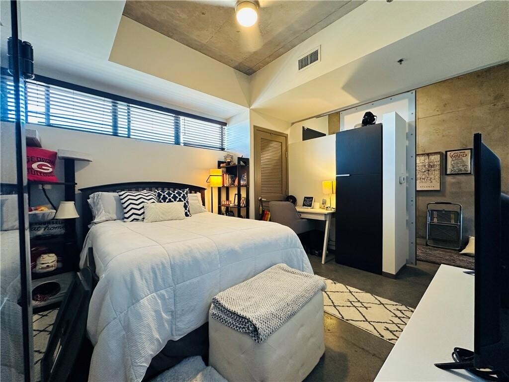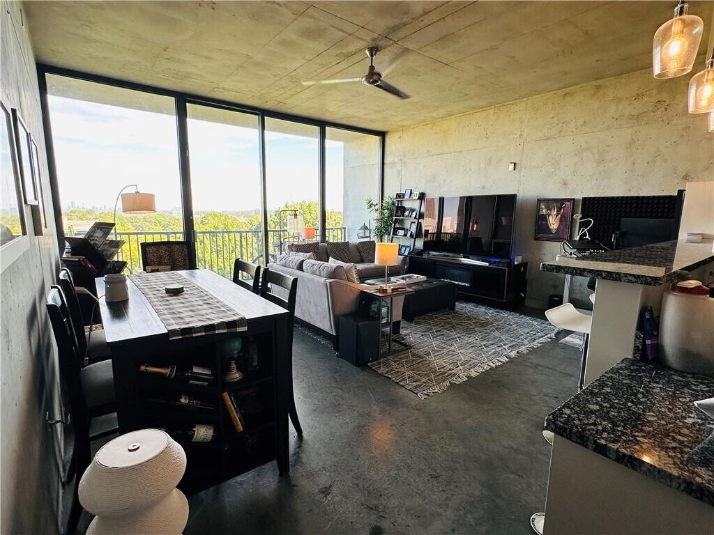 Live close to it all in Tribute--Old Fourth Ward's premier modern industrial lofts situated directly off of Freedom Trail. This unit nestled above the trees offers plenty of natural light with its floor-to-ceiling windows. Soaring 10ft ceilings greet you as you walk into this large 1br loft. All-concrete construction offers total privacy from your neighbors. The open kitchen to the living room is perfect for entertaining,and the private patio is a great place to start your morning. The primary bedroom ensuite is complete with a walk-in closet and expansive custom cabinet system. Tribute Lofts is conveniently located near the Beltline,Krog Street Market,a dog park,dining,and much more. The building offers tons of amenities including a rooftop pool that turns into a hot tub for half of the year,a gym,clubhouse,dog wash area,gated garage parking,coffee shop & restaurant below,plus an active & vibrant community with regular social events. 6 electric car chargers were recently installed in the garage. Water is included in the rent,and the building has access to ultra-fast Google Fiber. In-unit washer and dryer is located in the bedroom closet. Reach out to schedule a tour today!