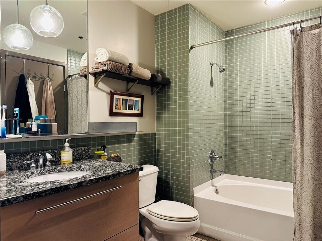 You'll be hard-pressed to find a more convenient in-city place to call home. Welcome to Tribute Lofts,steps from the Jackson Street Bridge overlook and the Dr. King National Park,a short stroll from the Beltline and Edgewood entertainment corridor and short drives or long walks to Ponce City Market. You're just blocks from the Atlanta Streetcar with access to all the downtown concert and sports venues and Centennial Yards and Olympic Park,too. But if you never want to leave home,who'd blame you? At Tribute Lofts,you have a rooftop pool (heated in the winter!) with the most amazing skyline view alongside social and meeting space plus a fitness center to go with sociable neighbors,a third floor landscaped courtyard and secure parking. Inside this two bed / one bath unit you'll have a breathtaking view of the Buckhead and Midtown skylines and all that's in between,from your balcony and floor-to-ceiling windows lining your open concept living room and kitchen.
