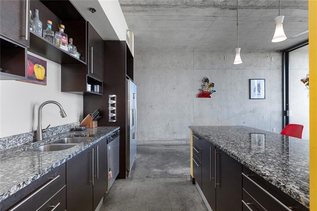 Live in the middle of it all in Tribute Lofts--Old Fourth Ward's premier modern industrial lofts with incredible views from Downtown to Buckhead to Stone Mountain. This unit perched above the treeline will be available on April 1st with the option for partial furnishings included. This 1br lives large with its 10ft height and floor-to-ceiling concrete,offering privacy and soundproofing throughout. TL is conveniently located near the Beltline,Freedom Trail,Krog Street Market,restaurants,and much more. Tons of amenities from the rooftop heated pool,clubhouse,a gym,dog wash area,gated garage parking,coffee shop,and a vibrant community. Outdoor private patio is perfect for your morning coffee. The open kitchen to living room is great for entertaining guests. Water is included in the rent,and the building has access to ultra-fast Google Fiber. In-unit washer and dryer. Please note that all of the yellow walls have been painted black. Reach out to schedule a tour today! MLS ID 7751961