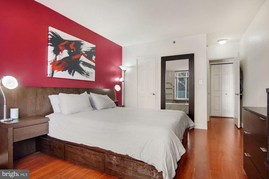 Location, Location !! Move in Ready, Secure building . Updated with beautiful hardwood floors, must see. One of the larger 1 bedroom units in Bldg. Luxury Bright Bethesda Condo with lots of sun light, gourmet kitchen with stainless steel appliances and granite countertops, W/D in unit, and large Balcony. Garage parking is available to rent separately. Building opens to the heart of Bethesda shops, restaurants, and the Bethesda metro.
