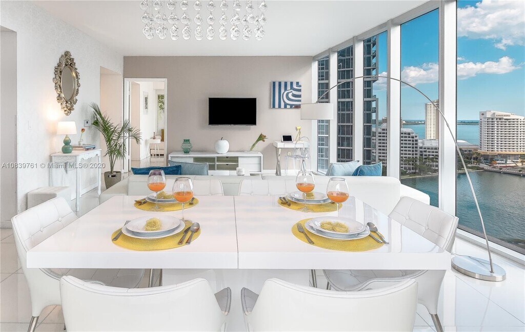 Corner, stunning views of Biscayne Bay. A large 2 bedrooms (king + queen beds), 2 full baths, large living space, floor to ceiling windows, kitchen completely equipped, marble countertops, Bosch and premium, large and small appliances. 100Mb Wi-Fi. 3 TVs, 100+ channels, including HBO & Showtime. Fully equipped, with linen, towels, pots & pans, dishes, glasses and cutlery, kitchen paper, dishwasher soap, etc. Among the electronics, you will find a nespresso, toaster, coffee maker, blender, juicer, iron (and iron board) and vacuum cleaner.