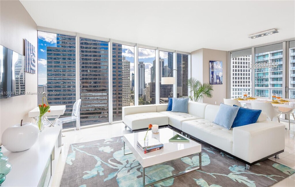 Icon Brickell – High-floor 1BD/1BA residence on the 36th floor with spectacular bay, river and city skyline views from every room. Bright open layout with floor-to-ceiling windows, spacious balcony, modern kitchen with premium appliances and in-unit washer/dryer. Offered fully furnished with stylish, comfortable décor – just bring your suitcase. Enjoy resort-style amenities including a 300-ft infinity pool, hot tubs, full spa, state-of-the-art gym, movie theater, restaurants and 24-hour concierge and valet. Unbeatable Brickell location, steps to Brickell City Centre, Mary Brickell Village, top restaurants and nightlife.