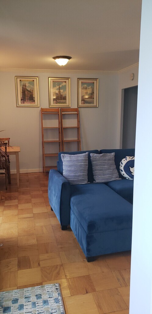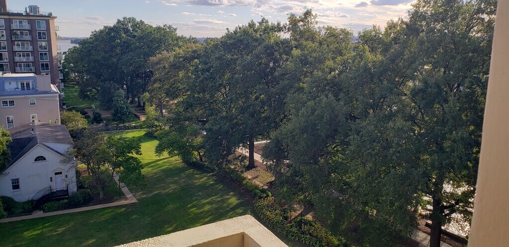 At the southern end of The Wharf, abutting the lovely Southwest Waterfront Park. Stunning 6th floor views from spacious, covered balcony, showing the confluence of the Anacostia and Potomac Rivers, the Washington Channel, Hains Point and northern Virginia. Great for enjoying sunsets and stargazing. Across the street from Waterfront Metro and Safeway. Very near northern Virigina. About Unit #W608 in Tiber Island Co-Operative Homes West Tower: Lots of storage in in-unit closets. End unit- no neighbors on one side; in a quiet hallway. One-bedroom with large window of the great view, plus a sizeable closet. Plenty of space for a queen-sized bed. Bathroom has bathtub and shower. Living room is open concept. Kitchen has lots of cupboard space. Gas stove. Tower has two elevators. Laundry is paid and in the basement of the tower (no need to go outside); it's usually not busy since many machines. Legal maximum is 3 inhabitants. Amenities: Large pool with long hours and a lifeguard. Gym with dance studio and many cardio machines, a weight bench and multi-use machine. Neither pool nor gym gets crowded. Weekly yoga classes. There is a front desk that holds packages for residents and emails you to come pick them up- very secure. Tower uses key fob or resident buzz-in entry and has a spacious, well-lit lobby, plus security guards on-site. Pet-friendly. Utilities: Cost includes all utilities. These are: heat; A/C; electricity; gas, water; sewage; trash; security; Wi-Fi and cable TV. Parking: Parking is not included. You can, however, reserve daytime parking with the front desk (spots limited) for free. Overnight parking (spots limited) can be arranged with the front desk for a small fee (about $10). Residents have access to the Tiber Island portal, so you can advertise you're looking for parking or rent from another resident there. Furnished or not: Can be rented partially furnished or unfurnished. If you choose partially furnished, included will be: queen bed frame, queen mattress with split box spring and mattress topper (all of which have been encased in dustproof, waterproof wraps since purchase); TV; couch (that folds into a twin bed and has a settee with storage); armchair; small dining table and chairs; hangers; nightstands and plastic storage drawers. Note: this is less than what is pictured. If you choose unfurnished, everything will be removed except the light fixtures. An absolutely enchanting corner of D.C.!
