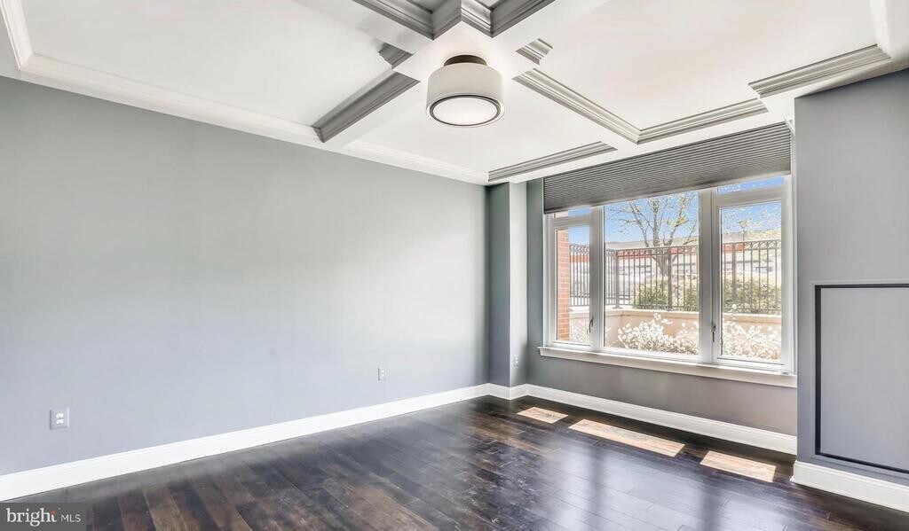 Gorgeous & Trendy Lobby Level Condo in Hampden Row. Downtown Bethesda Gem! NO NEED TO USE AN ELEVATOR- THIS UNIT IS ON THE LOBBY LEVEL. 2BD/2BA over 1100 sq. ft. Gorgeous gourmet kitchen with quartz countertops, white cabinets and stainless steel appliances. Over-sized center island doubles as breakfast bar. Sizable living room flows seamlessly. You'll love the separate breakfast area and built-in reading nook & storage bench, gleaming hardwood floors throughout, full size W/D and 10-ft ceilings Primary suite with coffered ceilings, tons of light, huge walk-in closet, en-suite primary full bath features stunning walk-in shower, designer lighting, and dual vanity topped with quartz. Large secondary bedroom with good closet space and second full bathroom also with quartz countertops and ceramic tile. 1-car garage parking space included in rent. Luxury condo building features top of the line gym/fitness center, front-desk concierge, secure entry as well as fabulous rooftop deck with fireplace and sweeping views of downtown #BETHESDA! Located seconds from METRO and all that downtown Bethesda has to offer, including tons of dining, shopping, and entertainment. $250.00 move-in fee paid to the condo.