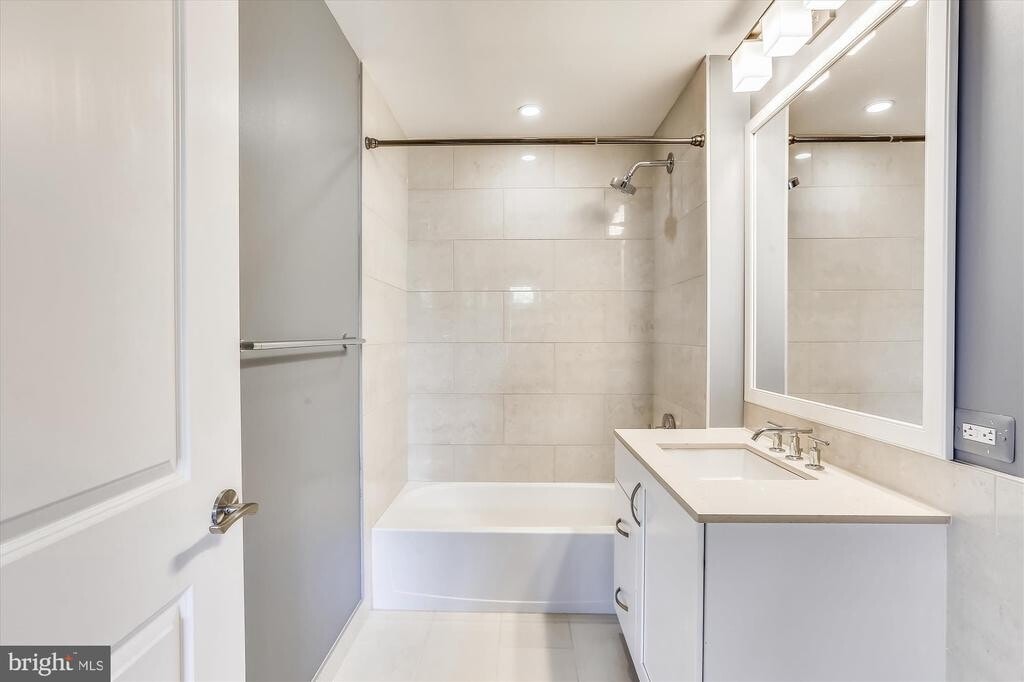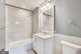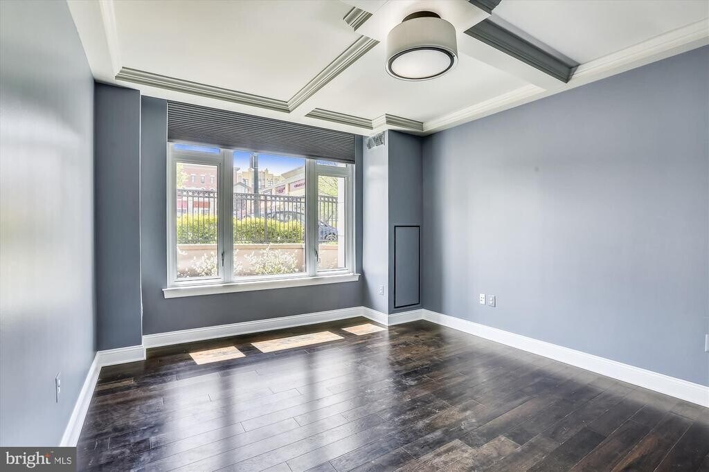 Downtown Bethesda Gem! NO NEED TO USE AN ELEVATOR- THIS UNIT IS ON THE LOBBY LEVEL. 2BD/2BA over 1100 sq. ft. Gorgeous gourmet kitchen with quartz countertops, white cabinets and stainless steel appliances. Over-sized center island doubles as breakfast bar. Sizable living room flows seamlessly. You'll love the separate breakfast area and built-in reading nook & storage bench, gleaming hardwood floors throughout, full size W/D and 10-ft ceilings Primary suite with coffered ceilings, tons of light, huge walk-in closet, en-suite primary full bath features stunning walk-in shower, designer lighting, and dual vanity topped with quartz. Large secondary bedroom with good closet space and second full bathroom also with quartz countertops and ceramic tile. 1-car garage parking space included in rent. Just seconds from METRO and all that downtown Bethesda has to offer, including tons of dining, shopping, and entertainment. $250 deposit required to be paid directly to Hampden Row Condominium