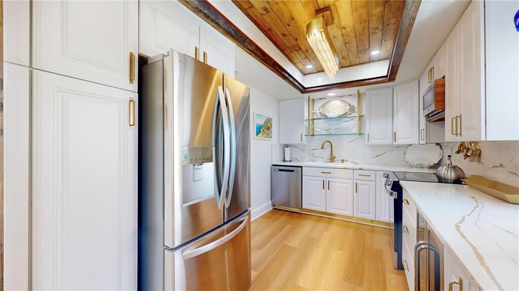 Now available at an AMAZING PRICE for a 3 to 4 month Lease,Available September 1st through December 30,2025. "FULLY FURNISHED AND WITH ALL UTILITIES PAID" Just pay the monthly lease and enjoy! This is undoubtedly one of the most gorgeous,professionally designed,and furnished units in all of Beau Monde. This unit has been 100% professionally renovated. Don't miss this opportunity to enjoy one of the most highly sought-after Condo units on the beautiful white powder sand beaches on the Gulf in St. Pete Beach,Florida. This 5 floor 2 bedroom 2 bath unit offers the most beautiful Sunrise views,East & South over the Intracoastal and Gulf. The Beau Monde offers a formal,secure lobby entry,heated saltwater pool,an exercise and weight room with sauna and showers,direct private beach access,tennis and pickleball courts,BBQ grills,and a club room,all complemented by the services of an on-site property manager. This unit includes a covered reserved parking space just outside the main lobby entrance. Excellent location in the center of St. Pete Beach,across the street from Publix,Starbucks,CVS,shopping and many restaurants with convenient access to I-275 and close proximity to the vibrant downtowns of St. Petersburg and Tampa. Enjoy a short drive or walk to incredible dining,entertainment and world-class amenities. Or,simply walk out the door and plant your feet in the soft white sand and enjoy the warm waters of the Gulf. You'll also enjoy relaxing strolls down quiet alleyways and experience the historic charm of Pass-A-Grille,a quaint seaside village just to the south with numerous boutique shops and restaurants. Just north you'll enjoy the exciting Treasure Island & John's Pass. Copy and paste this link for a 3D Walking tour of the unit: MLS# TB8409756